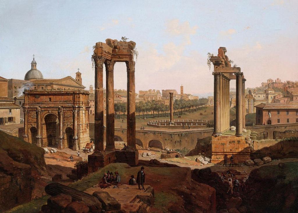 When not attempting to get classroom computers to work, I rediscovered T.S. Eliot’s Four Quartets, particularly concentrating on the Dry Salvages which really appeals to the historian in me. Isn’t “the trailing consequences of further days and hours” a great line? It evokes images of layer upon layer of human experience rather like this 19th century painting of the Roman Forum.