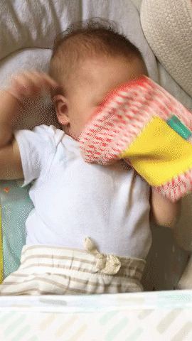 Here she is with one her favorite new toys, a bag that crinkles when you crush it: