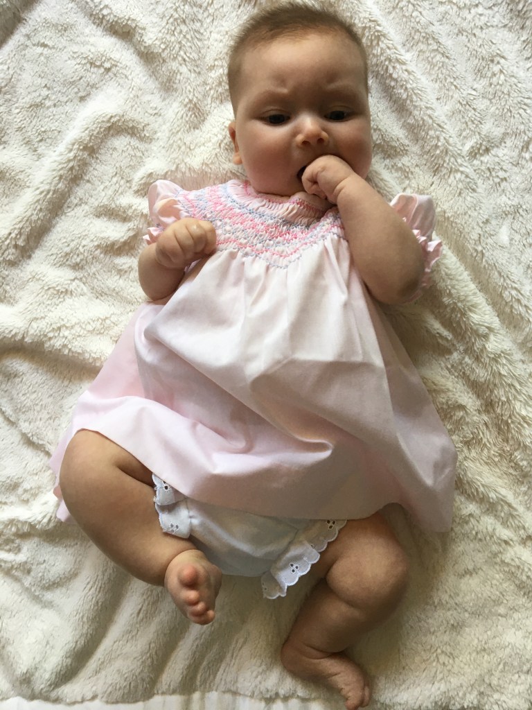 But enough of that. I have zero actual complaints. The precious babe continues to be precious. She is still working on all of her skills that will soon lead to rolling (we think). She seems to be growth spurting amidst all of this development (hence the fitful sleep, perhaps) and is now up to 14 lbs and 26 inches (by our own measurements, anyway). She is a little bit chunky in all the right places! (Is that the most embarrassing sentence a girl could ever have written about her?)