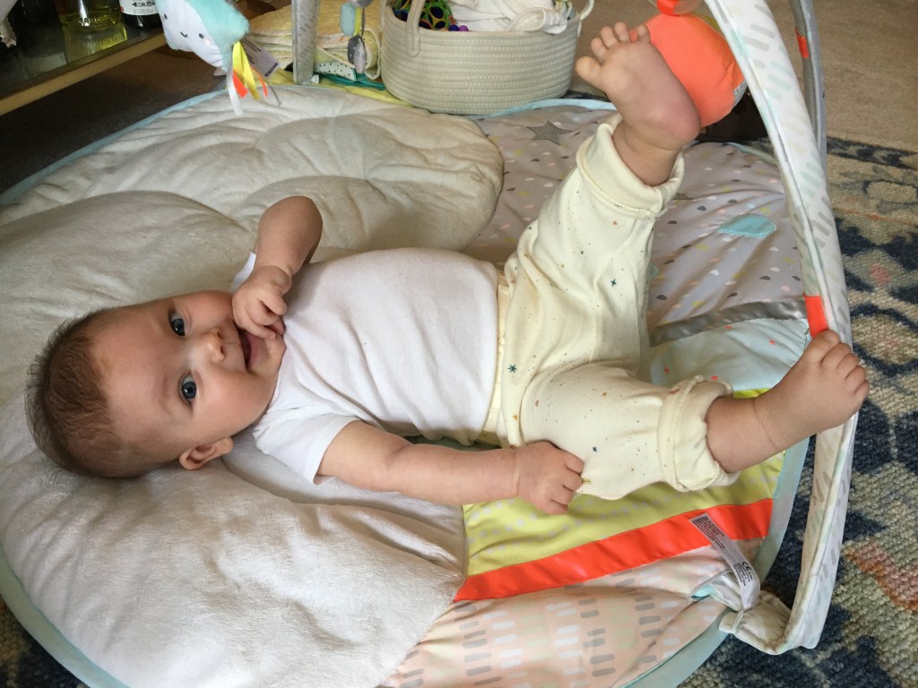 I had two days in a row with no Zoom calls, which means I got to do a bit more playtime with the cutie pie. Lots of kicking of legs in the air, twisting of hips, and gazing out of windows. What could be better?