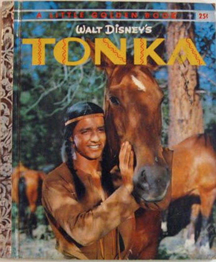 Much more to my liking as a child was the Disney movie Tonka (1958). This story takes place in the territory of the Dakotas in the 1870s, where a young Indian brave, White Bull, captures a wild stallion and names him Tonka. Yellow Bull, the brave’s cousin, is jealous and mistreats Tonka so that White Bull frees the horse once more. The horse’s new master, Capt. Myles Keogh, rides him into battle with General Custer in the Battle of the Little Big Horn, where Keogh is killed by Yellow Bull.