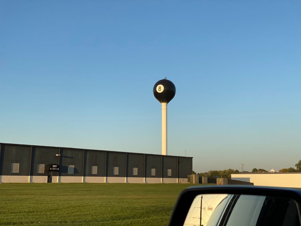 Of course, this meant a drive through Tipton, the billiards capital of the world and home of the infamous 8-ball water tower. It cracks me up whenever we drive through.