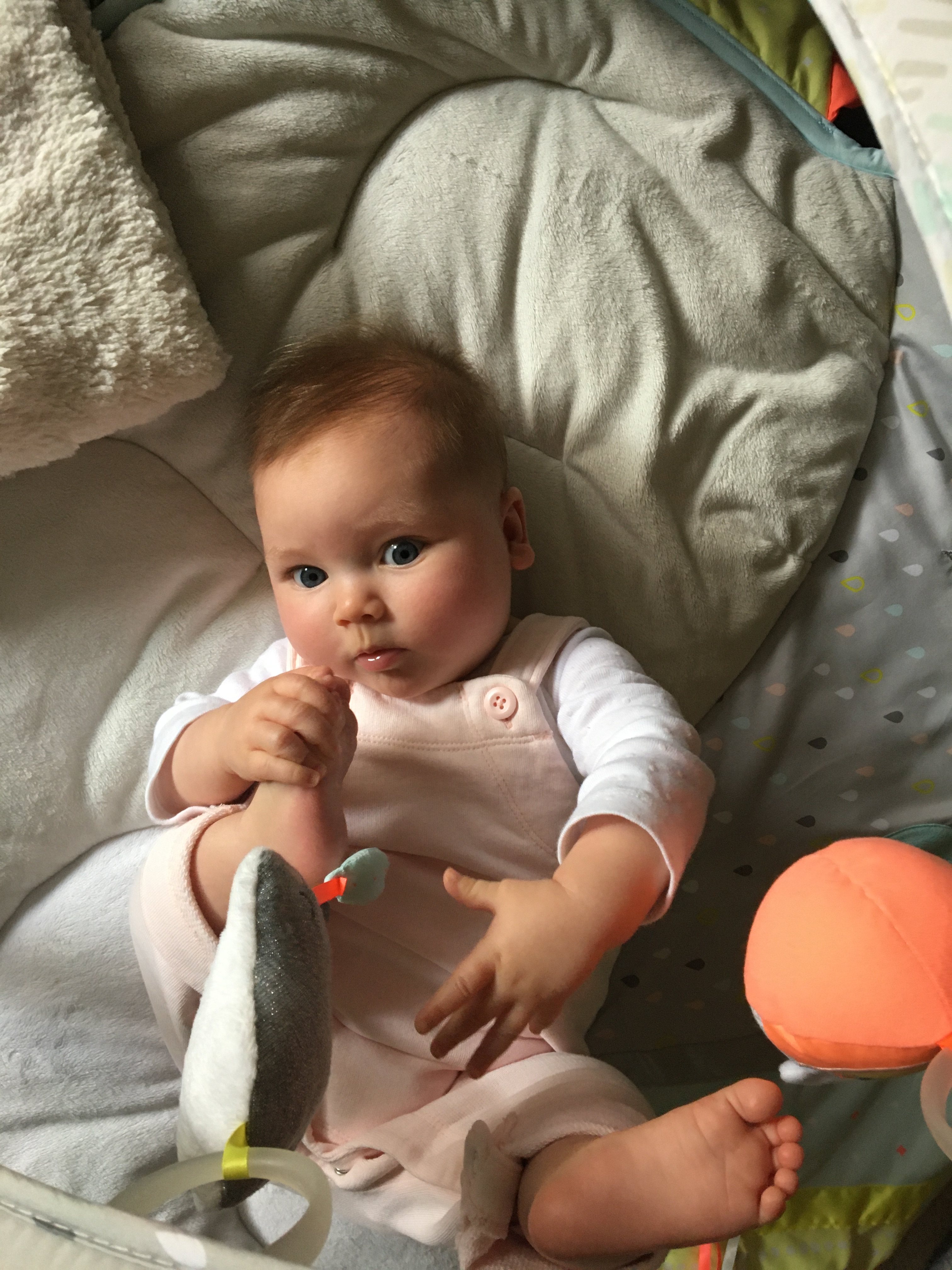 Well, we are mostly keeping ourselves entertained with our feet these days. They are pretty adorable feet, to be sure!