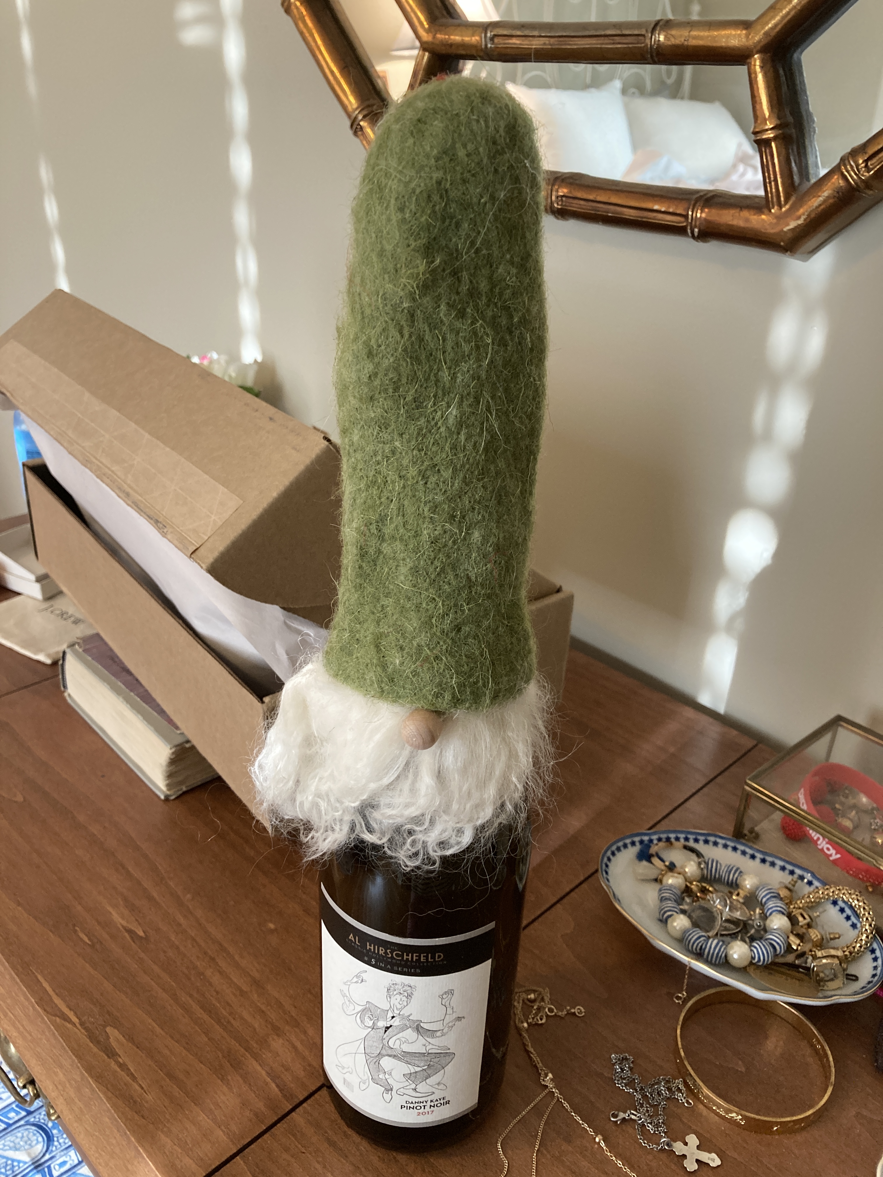 We all know I’m so fun! But did you know I am decorative gnome wine bottle topper on a DANNY KAYE THEMED WINE BOTTLE fun? I have four.