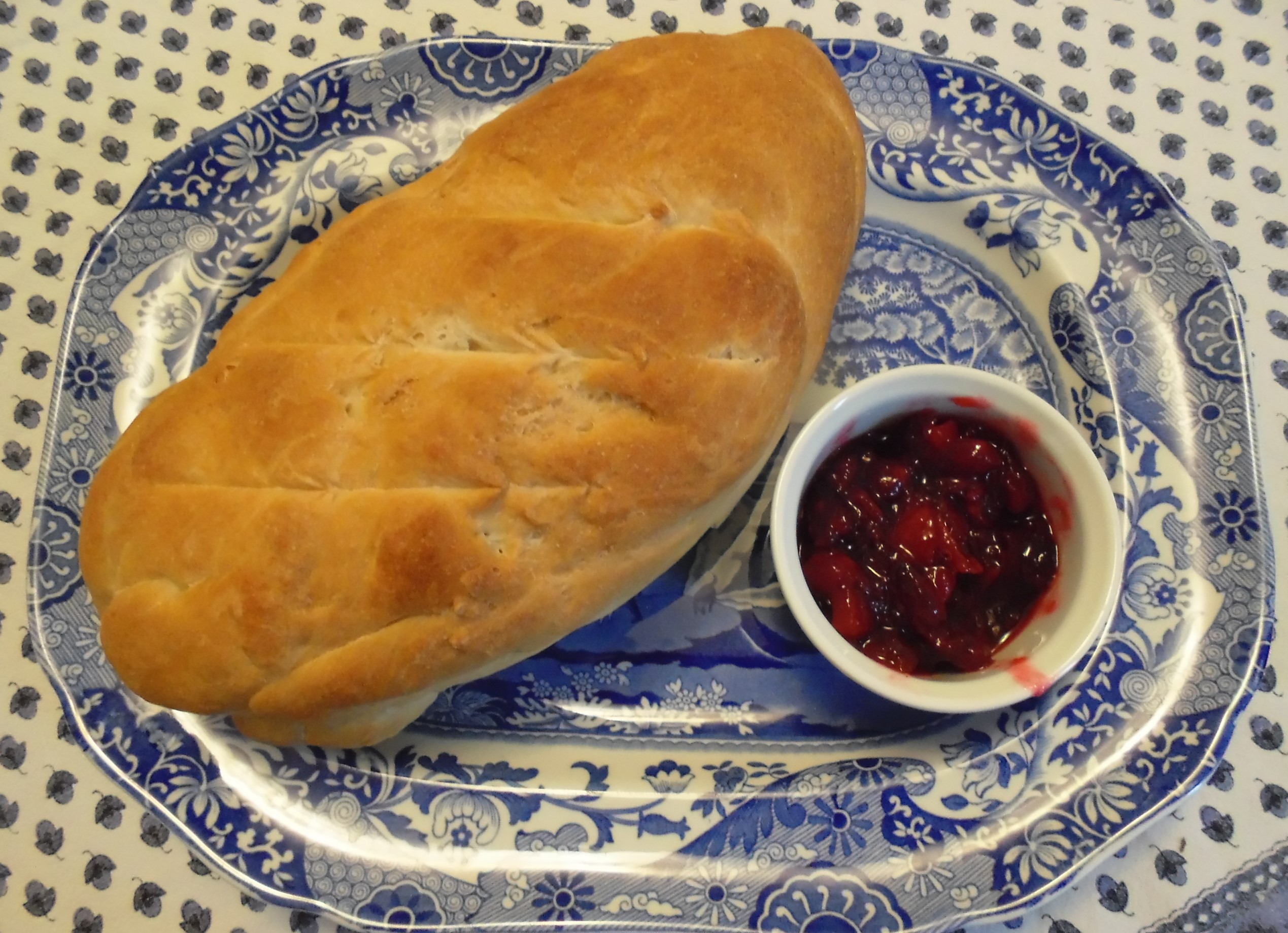 This week I had the urge to cook. I started by making cranberry-pear chutney (i.e., cranberry sauce) from a recipe that my son’s fiancée shared with me. Though I halved the recipe, I still ended up with a vast quantity of sauce. I hope it freezes well. Then I tried my hand at making baguettes from scratch (okay, the bread machine mixed the dough but I did the rest), so we could eat the chutney with brie and bread. Although my bread did achieve a hard crust, the end shape was all wrong and the interior texture lacked the requisite air pockets (but I felt it wasn’t bad for a first effort).