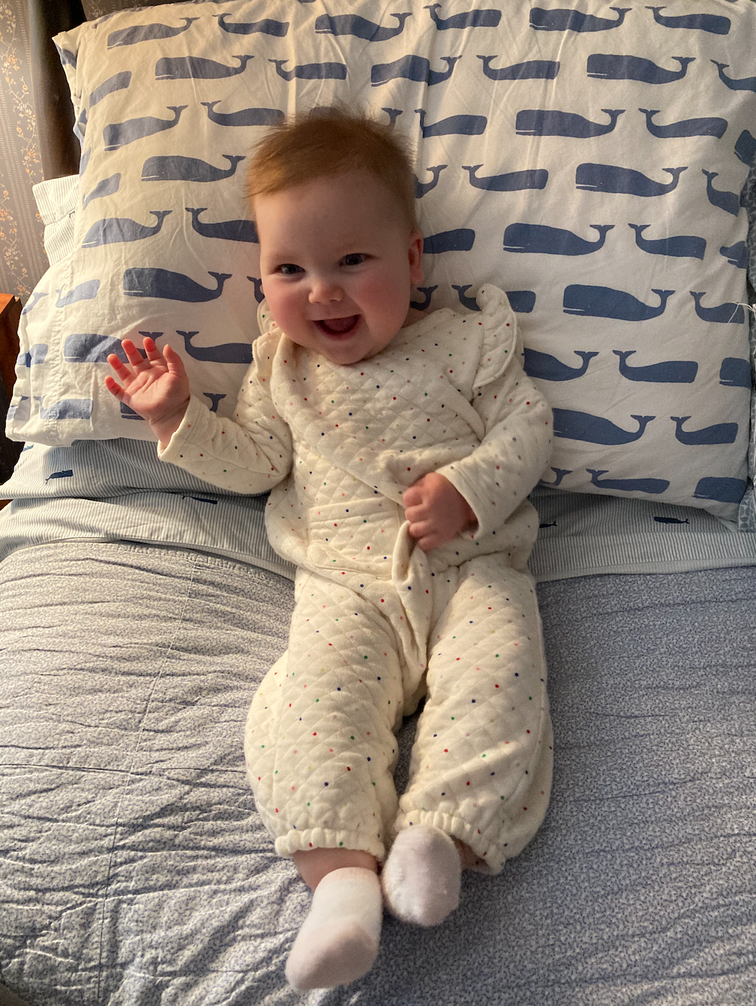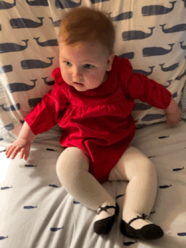 Some baby clothes are a bit much — tiny pockets and ruffled shoulders and quilted fabric?! — but this outfit makes up for all that by making Katie look like a funfetti cupcake. Of love, obviously.