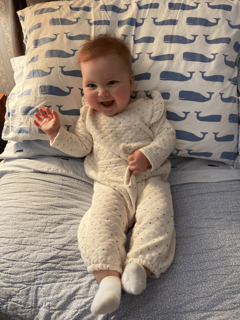 Katie is having lots of fun being passed from lap to lap. She has so much fun that she takes even better naps than usual…