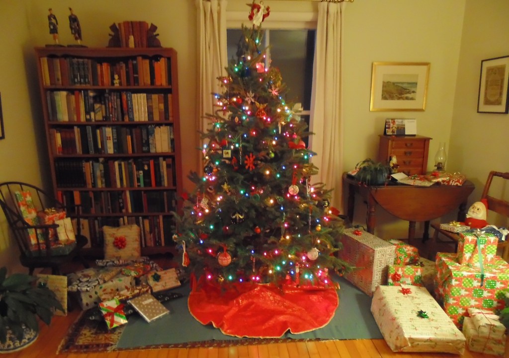 It’s 8:48 on Boxing Day morning and Tim and I are up and drinking tea, while the other two still slumber and outside the snow is falling steadily. Our Christmas was full of good cheer, wonderful gifts, too much food and loads of fun — so I took only a couple of photos. Here’s the tree before the unwrapping: