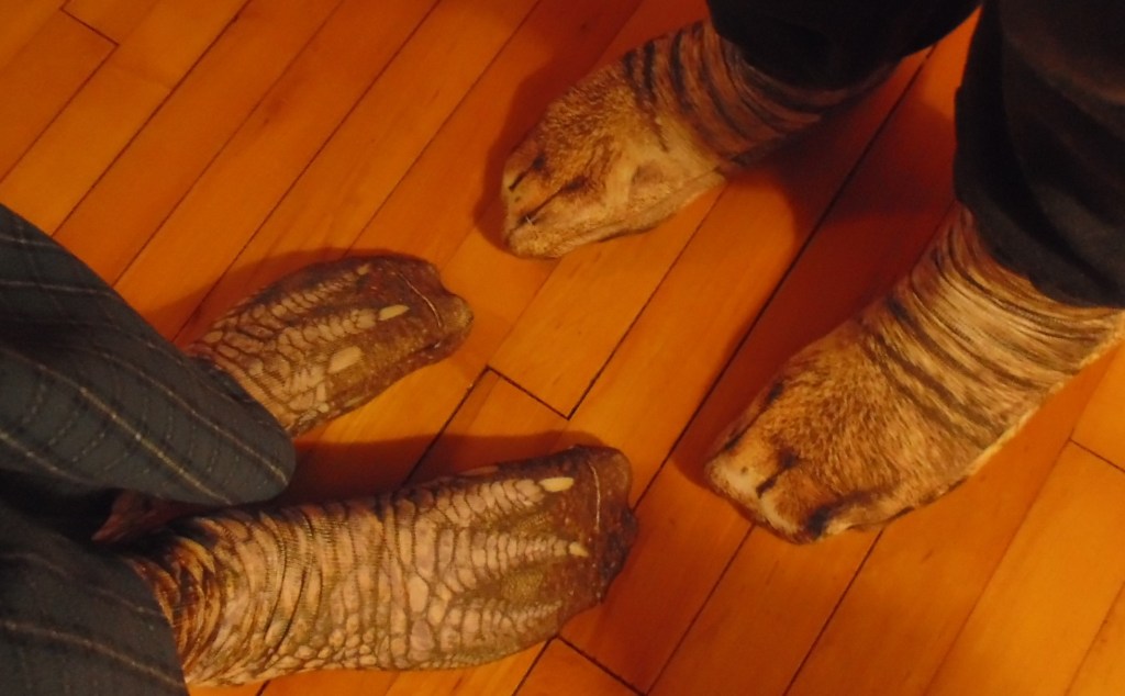 In case you are wondering, those are dinosaur feet and cat paws — exactly what everyone needs.