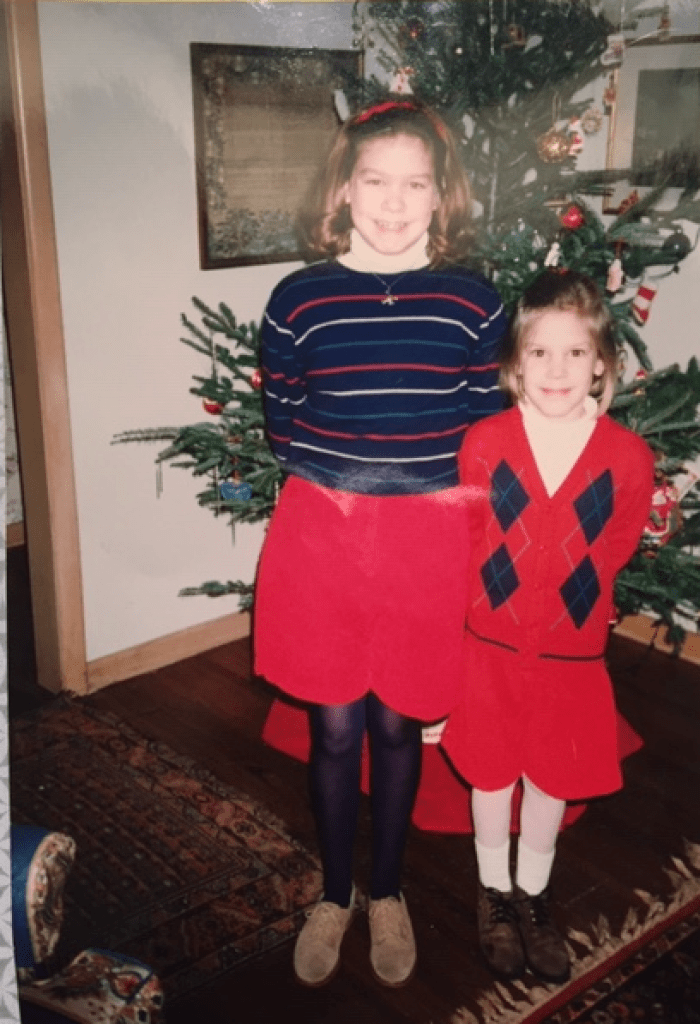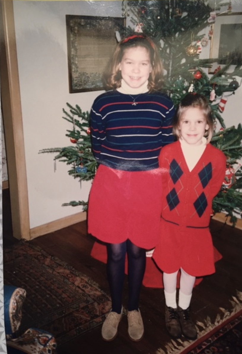 And here’s a photo from Christmas 1996–24 years ago–which I found stuck in a book. Daughters #1 and 2 are sure stylin’ in their red corduroy shorts!