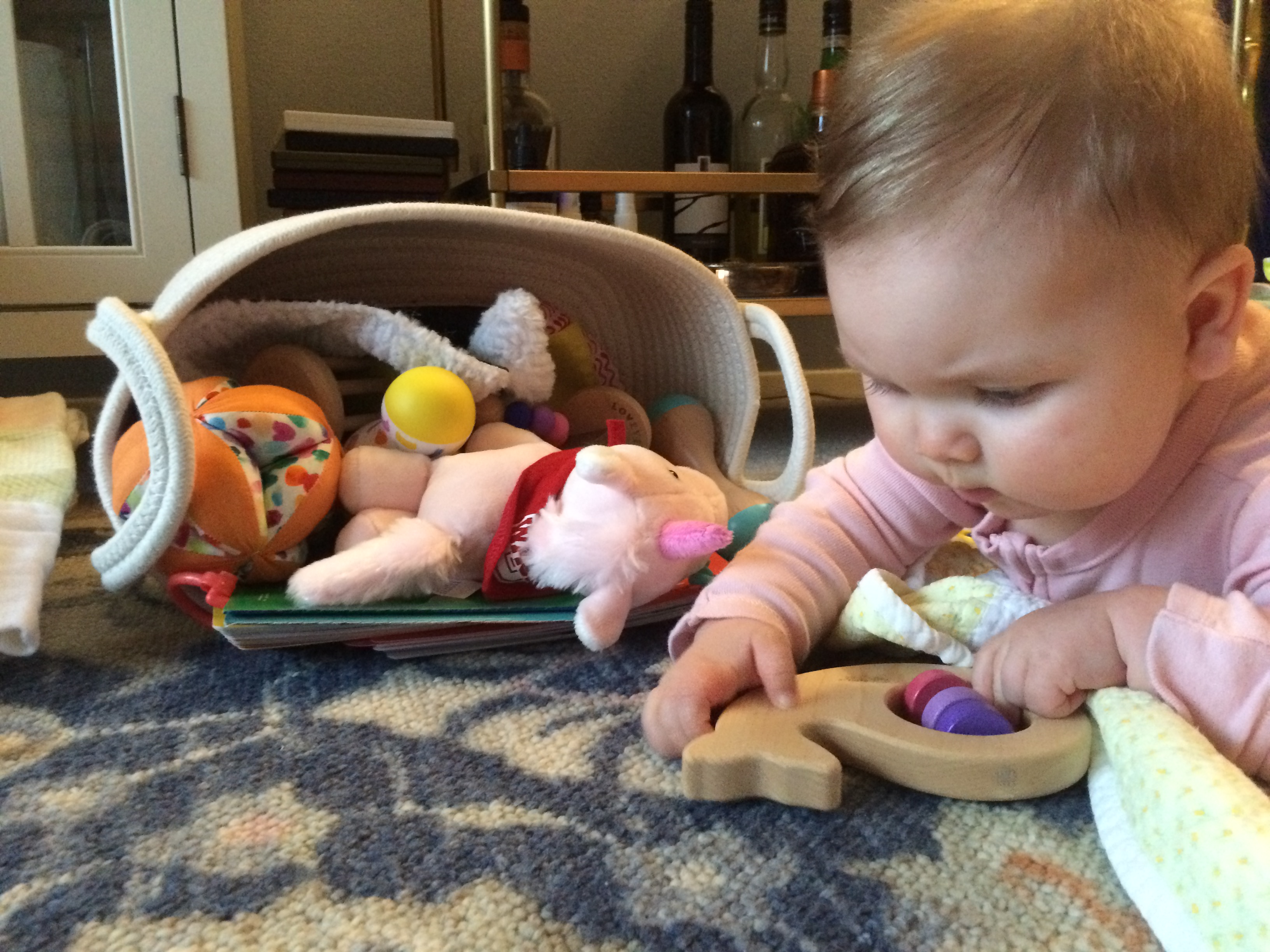 Now that she can topple her own toy bin, I’ve added “baby proof the bar cart” to my to-do list.