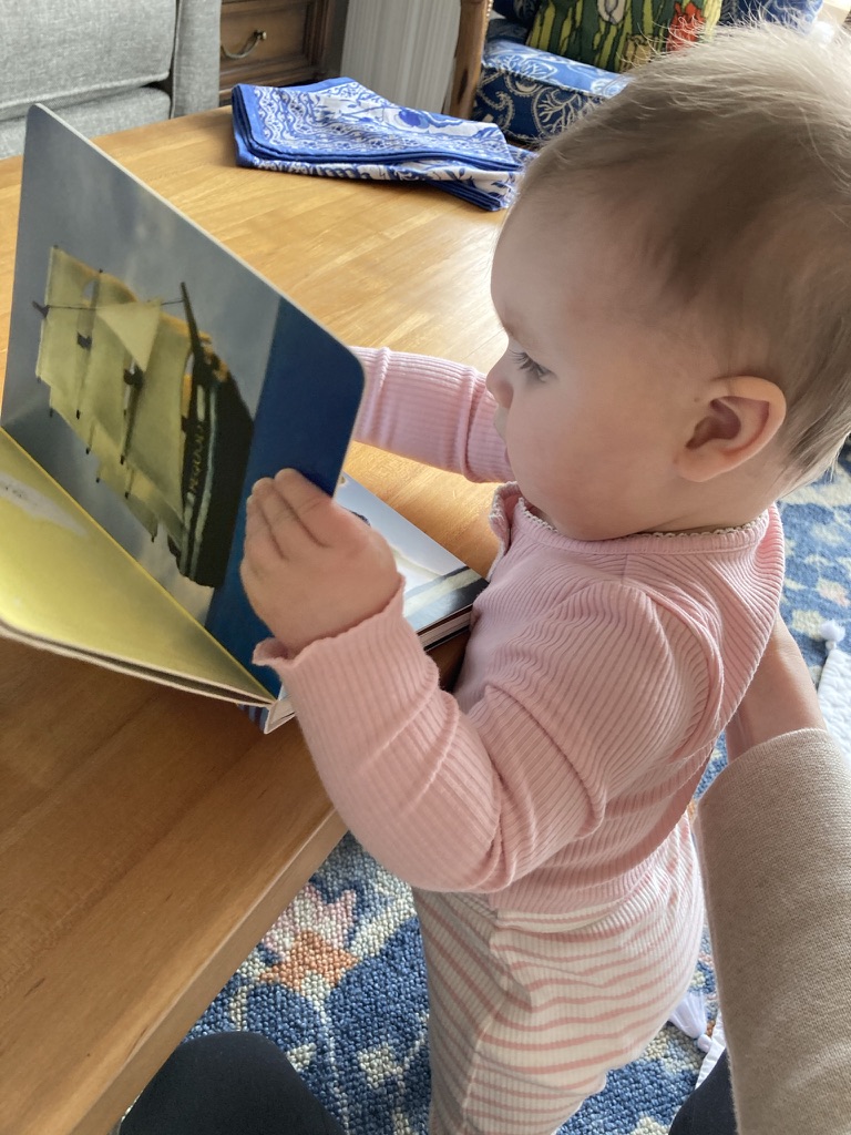 She has also grown very invested in her standing practice. Sitting is old news! So here we are, reading our books at the table instead of on the floor.
