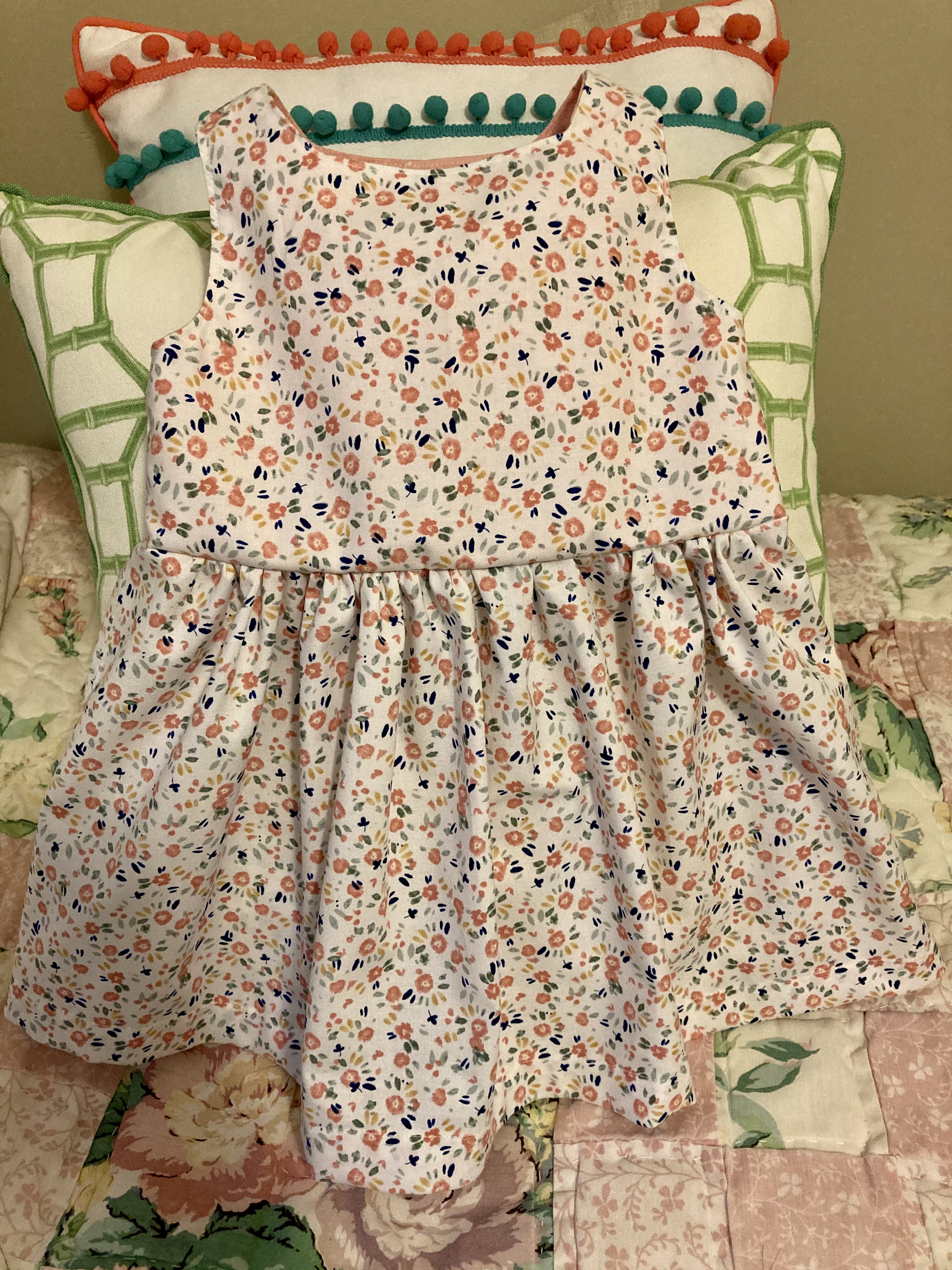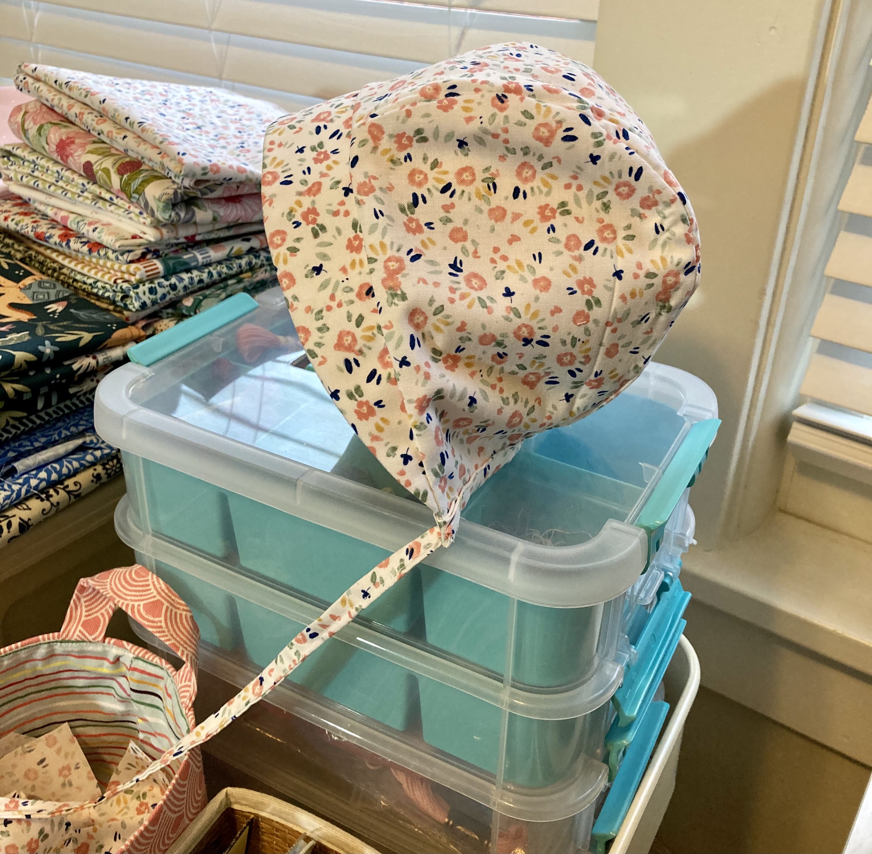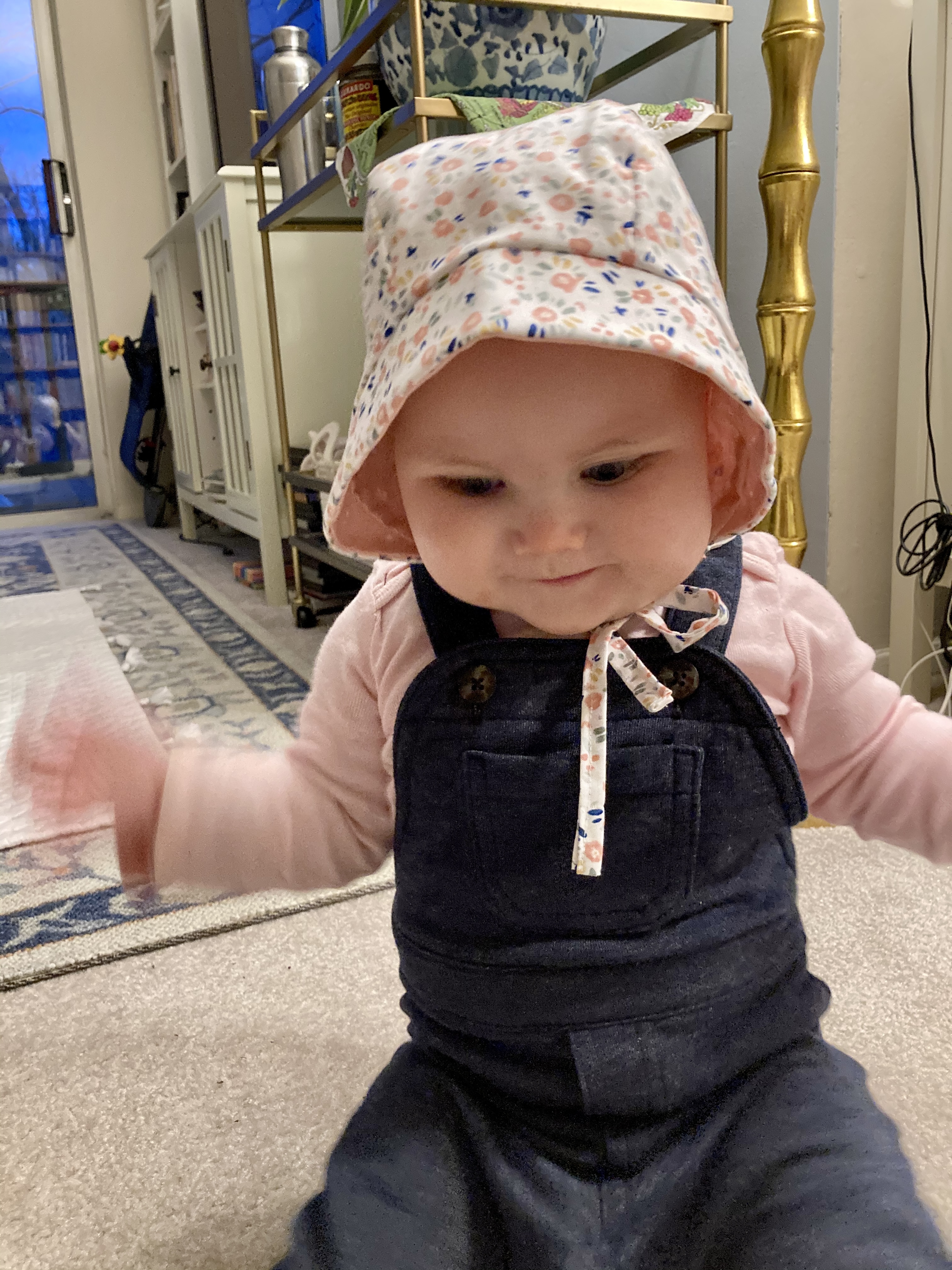 In other news, my sewing skills continue to progress. With Baby Katie as the chief recipient. Two weekends ago, I made a bonnet for the sweet babe. My mom sent me a blog post about “cottagecore” being a thing–because she is hip to the latest trends and has to inform me. Not going to lie, it’s real cute.