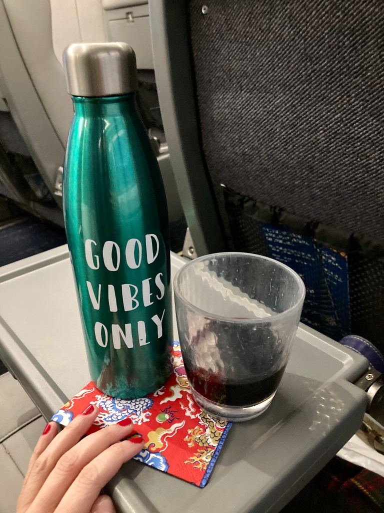 I enjoy train travel and find it much more dignified than air travel. Although, I was worried the bar car would be closed because of COVID–so my mother packed some wine in an appropriate water bottle. Don’t worry, it wasn’t full!