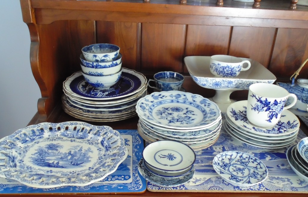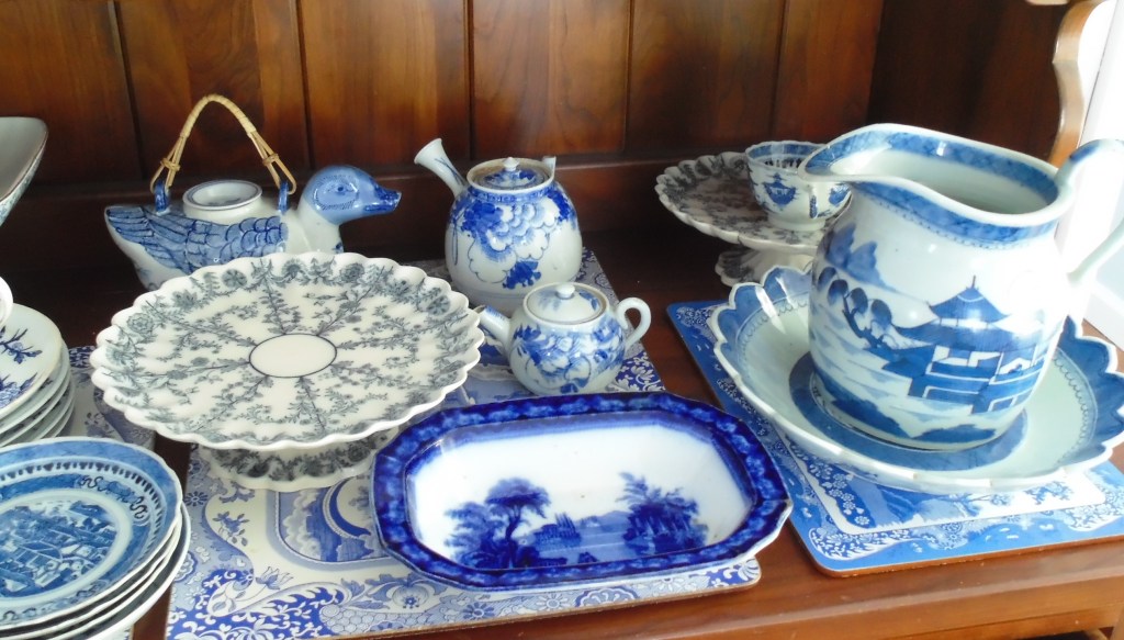 a couple of modern pieces (duck teapot anyone?), some Canton Ware Chinese export porcelain, and several pieces of 19th century English transfer ware.