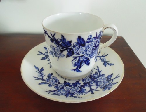 It was a ‘normal’ week. Nothing much happened, although I managed to get behind at work because I spent a lot of time researching the china I bought at an auction last weekend. I know what you’re thinking, and you’re right. The last thing I need is more china. What can I say? Consider it a rescue operation. My purchases came from a beautiful historic home in Sackett’s Harbor that had been in the same family for almost two hundred years. It’s a shame they decided to sell it all. Since I had no need or space for any of the furniture, I did not bid, but there were a few fun things — a Chinese gong and a couple of top hats that I thought would make great presents for my sons. Alas, other bidders with the same idea were willing to pay more than I. After a fun evening glued to my laptop, I ended up with this large, mixed lot of china, including several pieces that are beyond use or heavily repaired (the entire stack at the back left of the photo below), a few orphan cups,