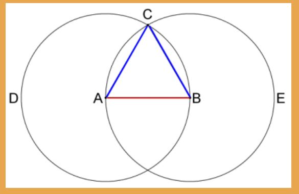 This is now -- this was erst, Proposition the first -- and Problem the first. On a given finite Line Which must no way incline; To describe an equi -- lateral Tri -- -- A, N, G, L, E. Now let A.B. Be the given line Which must no way incline; The great Mathematician Makes this Requisition, That we describe an Equi -- lateral Tri -- angle on it: Aid us, Reason -- aid us, Wit!
