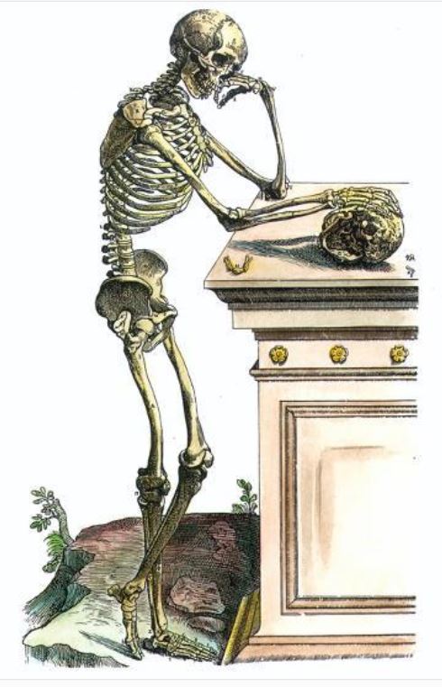 Some scientists produced art. Andreas Vesalius, the 16th century Flemish philosopher and physician, also created his own allegorical illustrations. Here’s his “learning skeleton”.