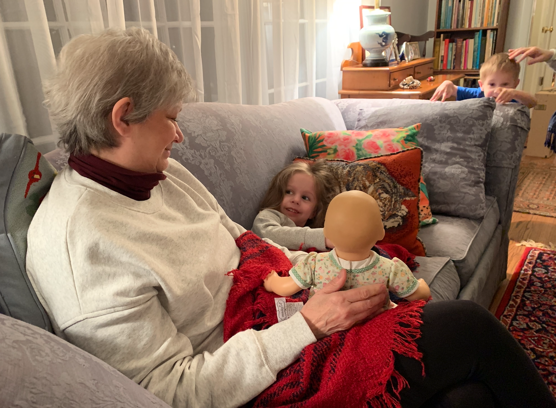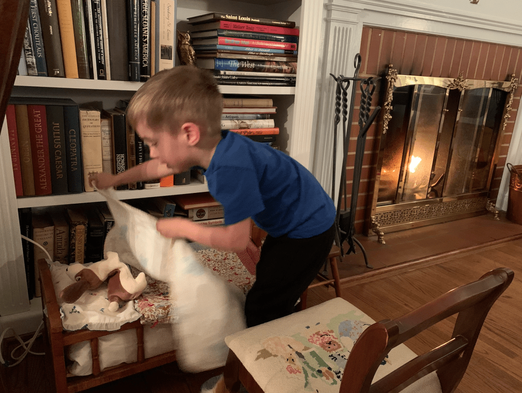 The wee babes came over with their dear parents on Sunday night and we had fun playing and talking and eating dessert. (Dinner is more problematic.)