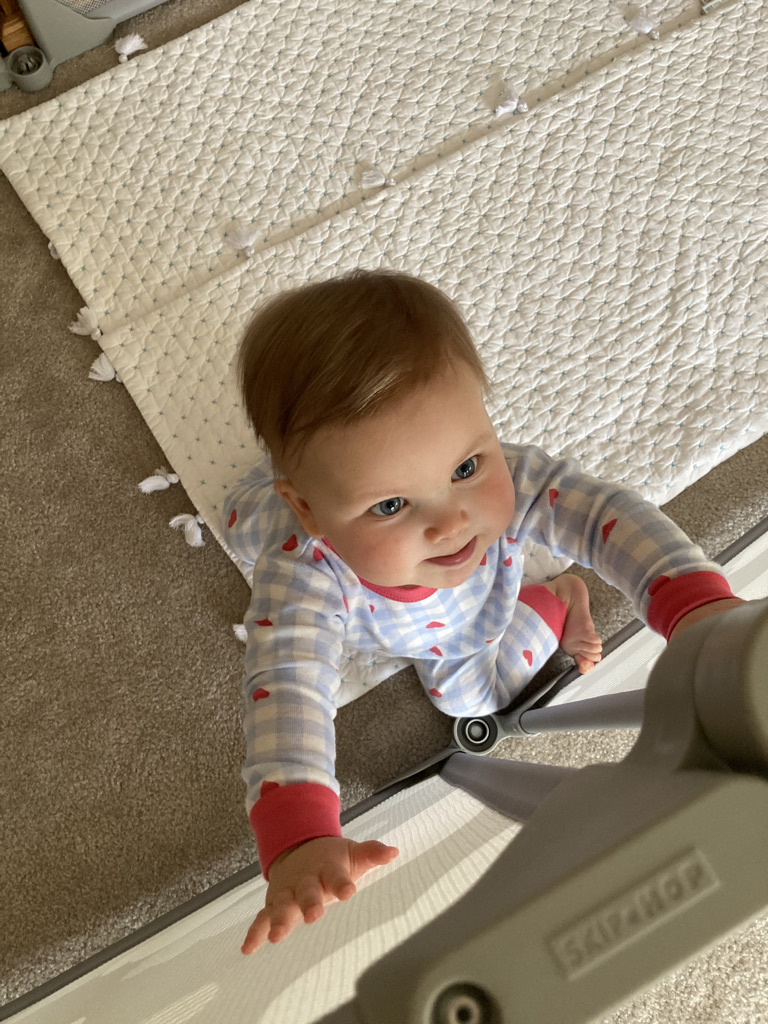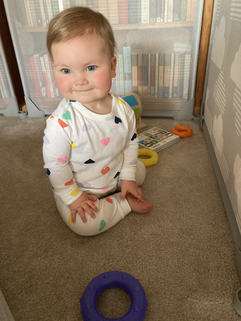 I am confident that before we know it, she’ll be climbing up the walls of her “pen” —
