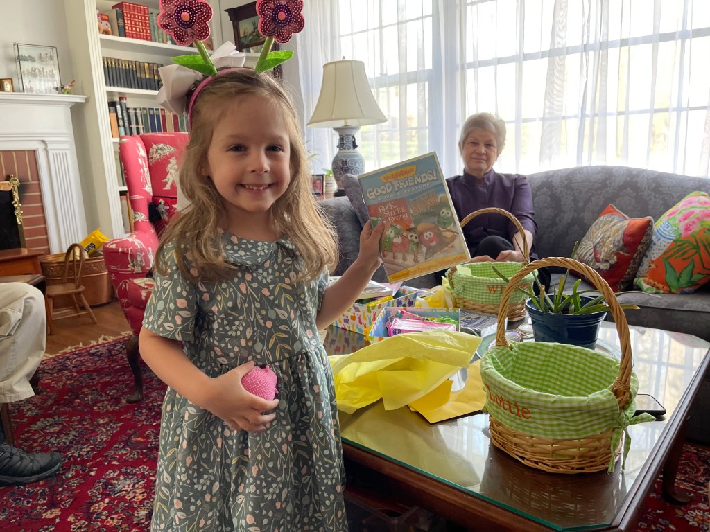 When we got home, I made Episcopal Souffle (ironic, yes) and then the boy and his family came over. The babes opened their Easter baskets.