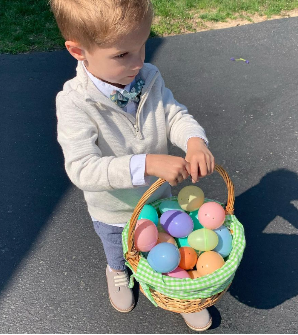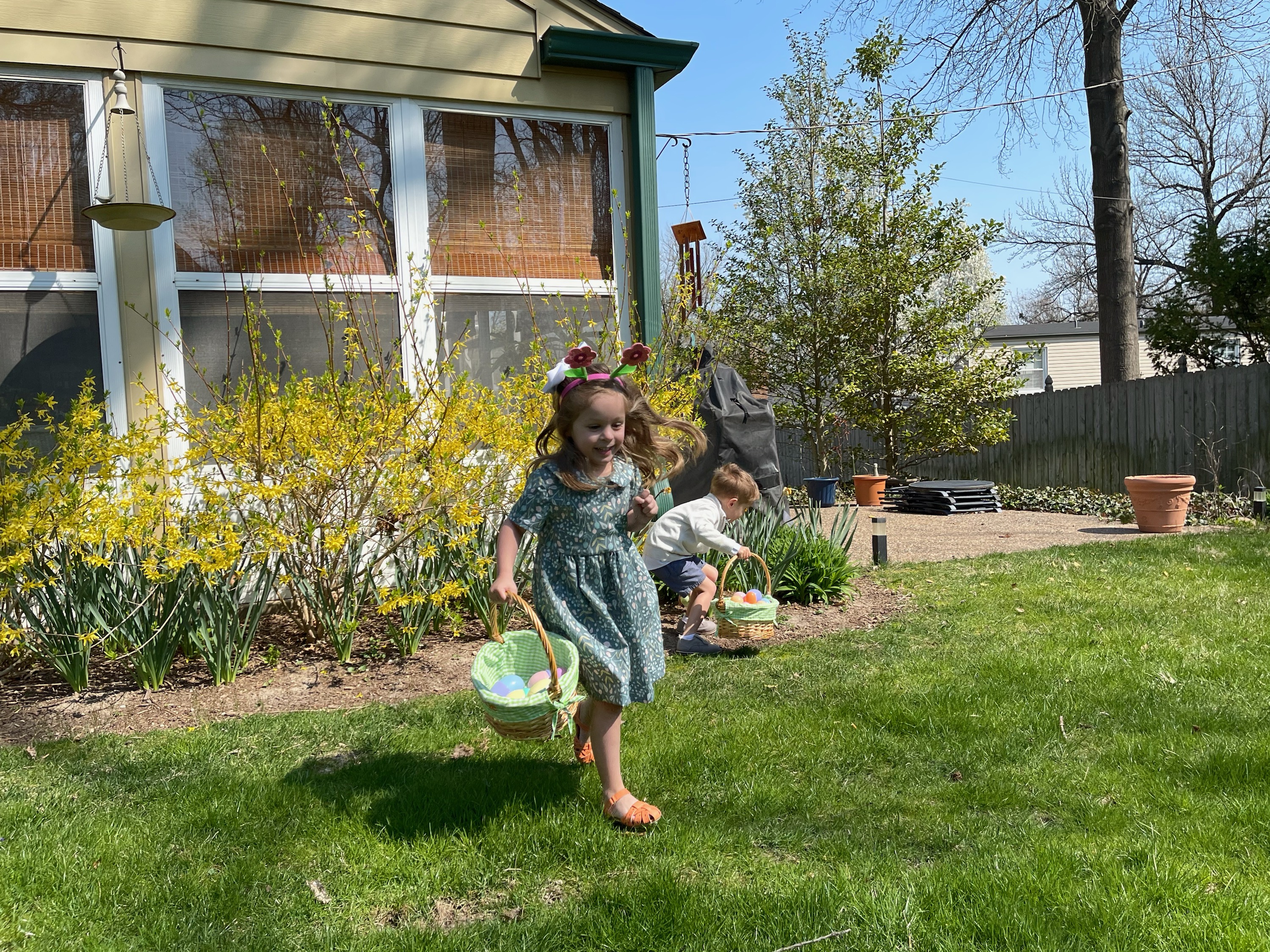 When we got home, I made Episcopal Souffle (ironic, yes) and then the boy and his family came over. The babes opened their Easter baskets.