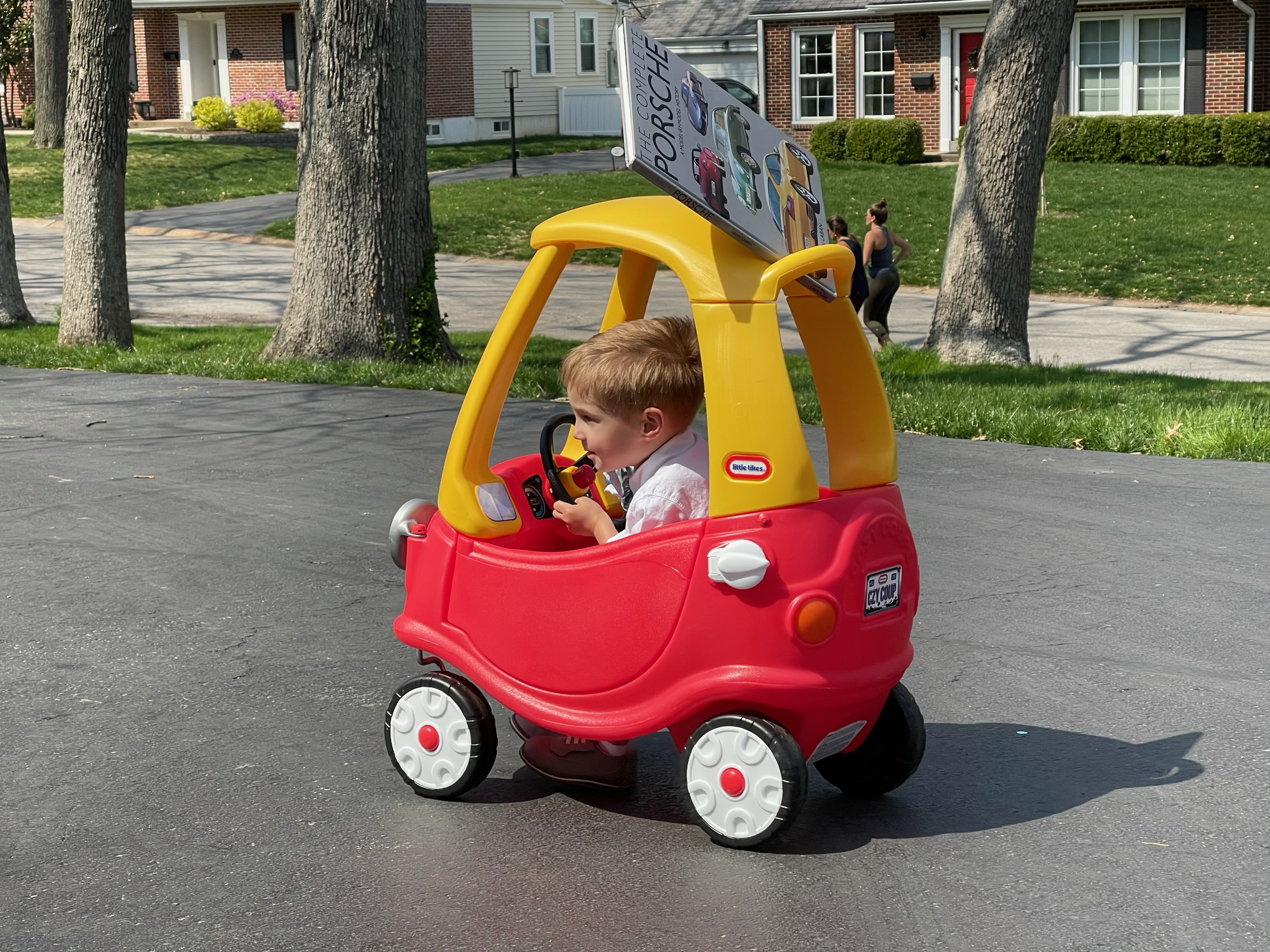 Daughter #1 gave the wee laddie a book on Porsches (estate sale find), which he opened to squeals of joy. He carried it around for the rest of the day.