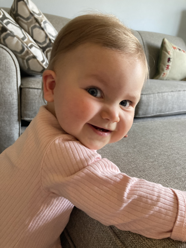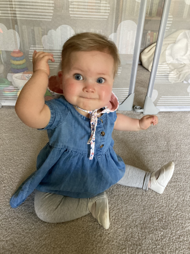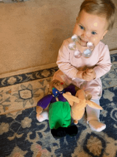 We suspect that another tooth is coming in, so the teethers are back in action. Does anyone have advice for holding on to your teether while doing your wiggle dance?