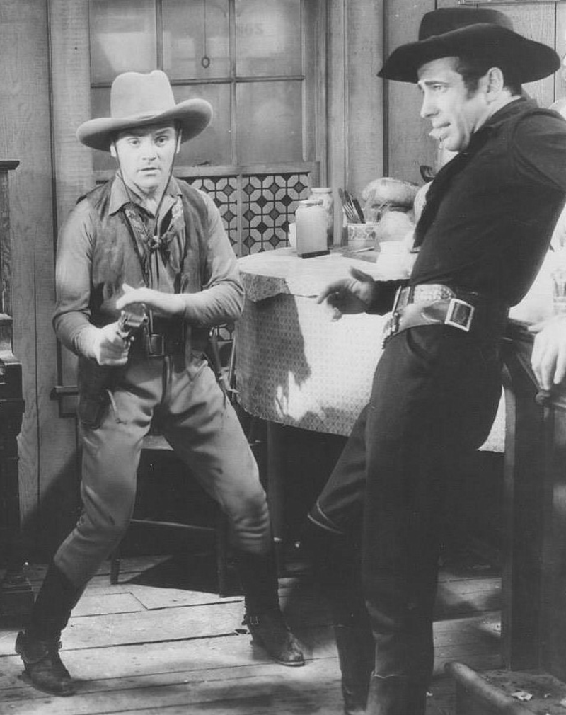 I watched two Humphrey Bogart movies this week: The African Queen (1951) and The Oklahoma Kid (1939). I enjoyed them both a lot. The African Queen is a classic, of course, and I have seen it many times. I had not seen the latter in 50 or so years–not since the Humphrey Bogart Theater on channel 11 days of my childhood. It also stars James Cagney as the eponymous hero. He is a little weird (and short) in a western, but I have grown to appreciate him in my dotage. He had a style all his own, even in high-heeled cowboy boots.