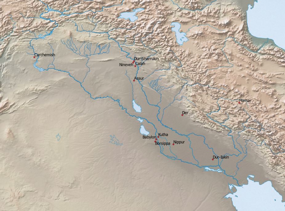 One of the things that attracted me to the digital history workshop I’ve been attending was the prospect that I’d learn how to produce a map, and wonder of wonders, I have. My first effort doesn’t look like much — Assur is in slightly the wrong place for starters — but I’m proud of it anyway. I had to find and insert the base map, add a layer of rivers, and input all the location data. I’m still working on how to label geographical features like rivers, lakes and mountains.