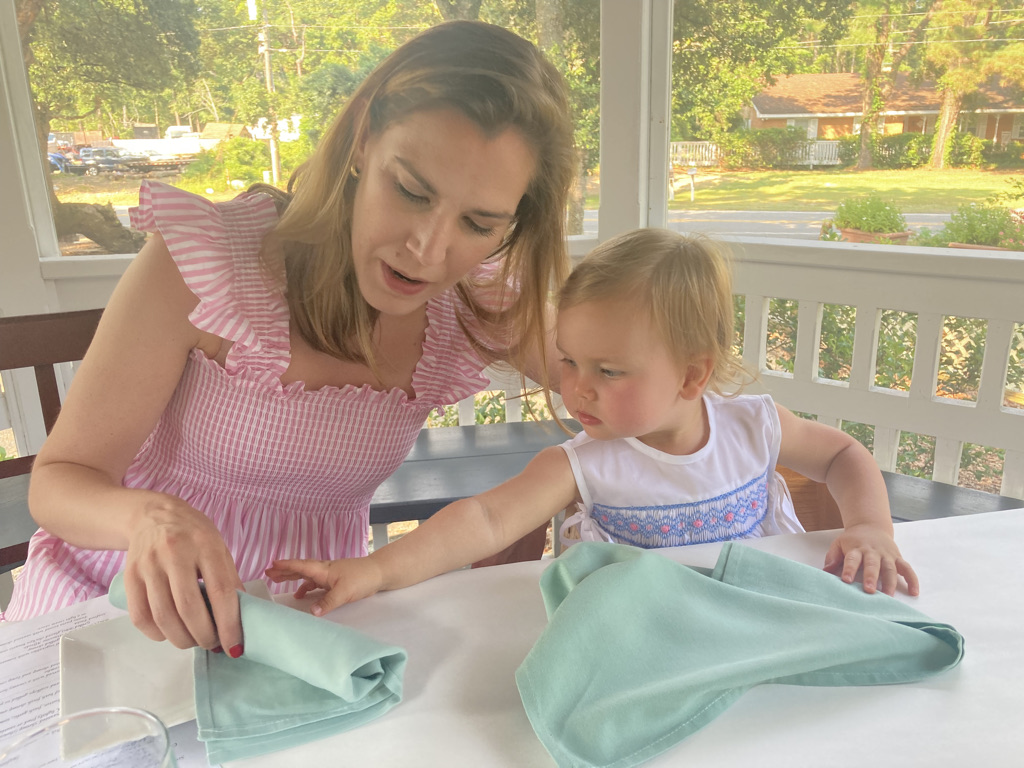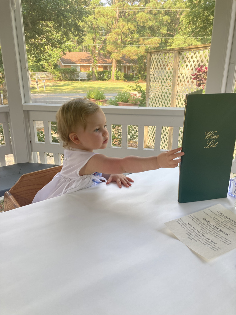 …we also managed to dress up and go out to dinner a couple of times. Katie is increasingly more toddler than baby, so sitting at the dinner table is becoming more of a challenge, even with a wine list and tableware to inspect.