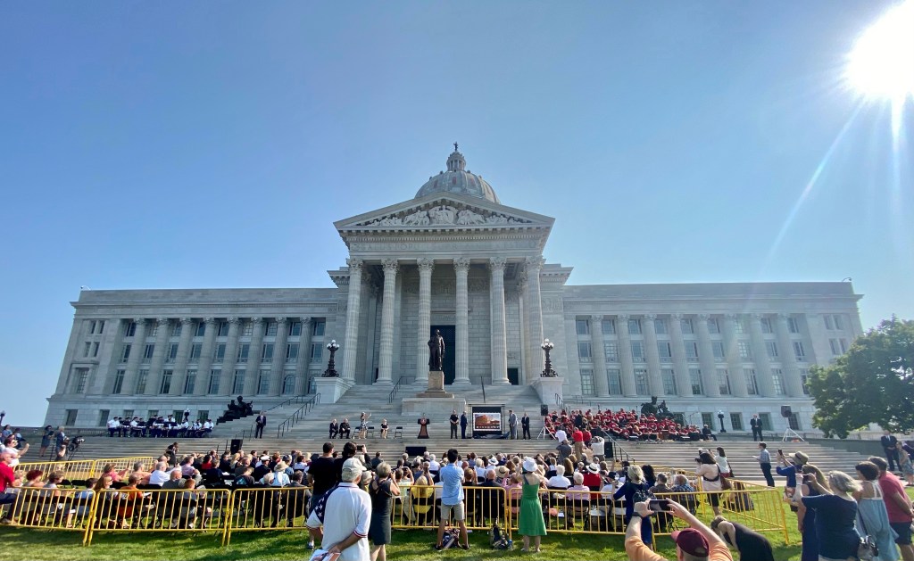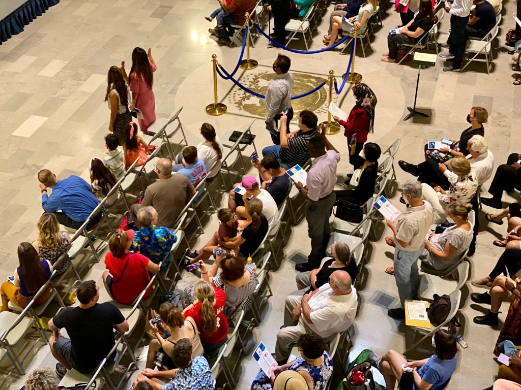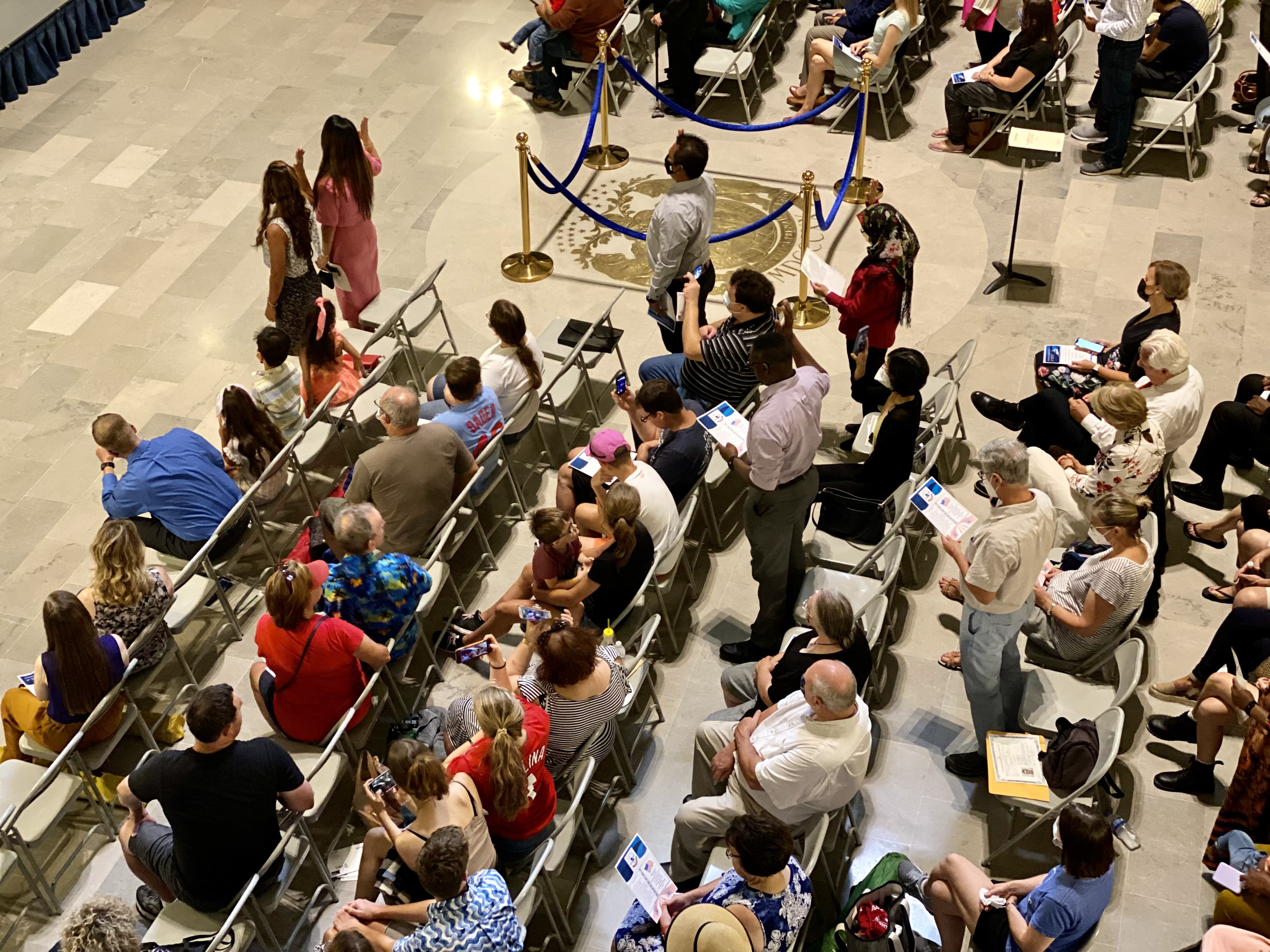 Later, inside, there was a naturalization ceremony where 33 lucky people became United States citizens. They were all really excited and I found the whole thing very moving. There was one of those All-State choirs there and they sang the National Anthem beautifully.