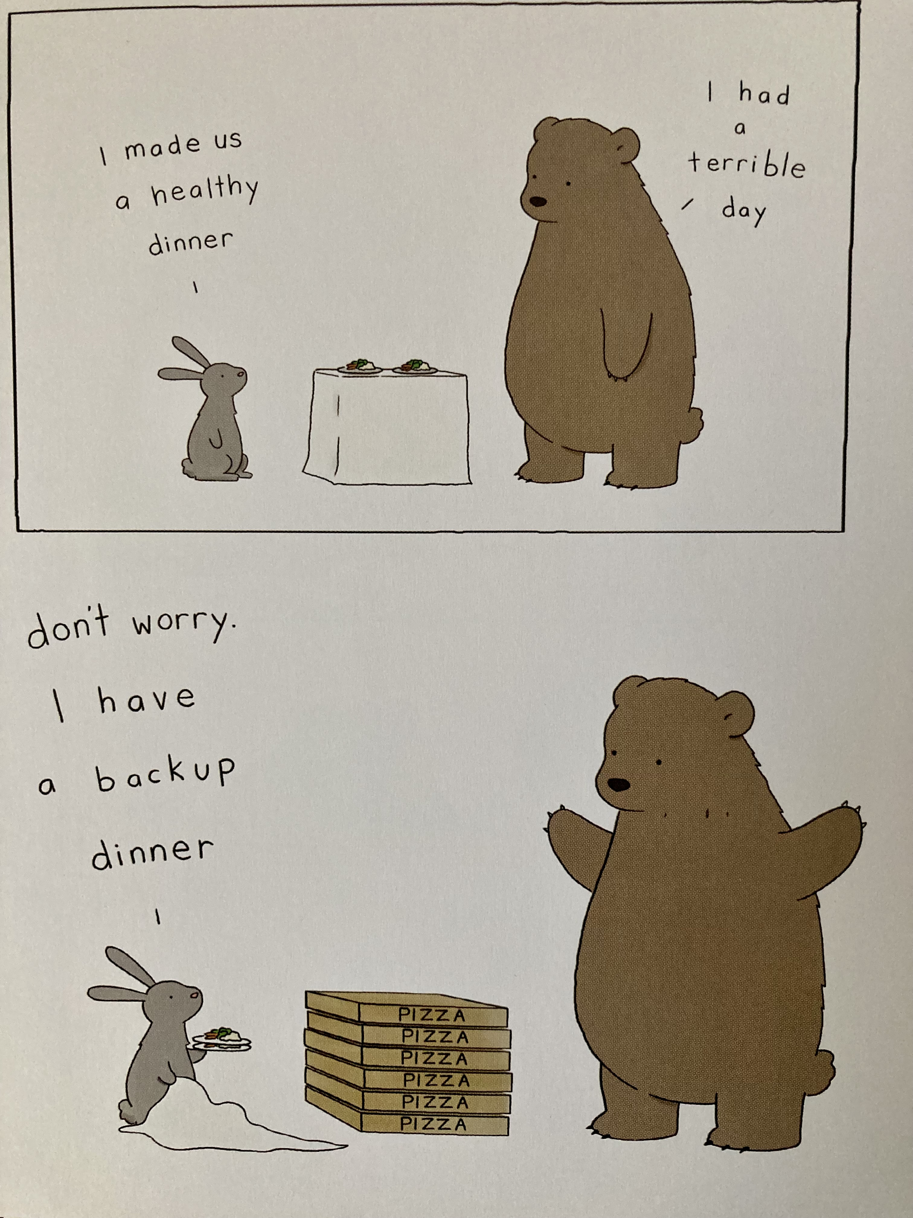 This is pretty much me to myself every night. I didn’t even have a terrible day–but lately it seems like there is all this existential stress and dread looming over us all the time that it feels like a terrible day, even when it isn’t!