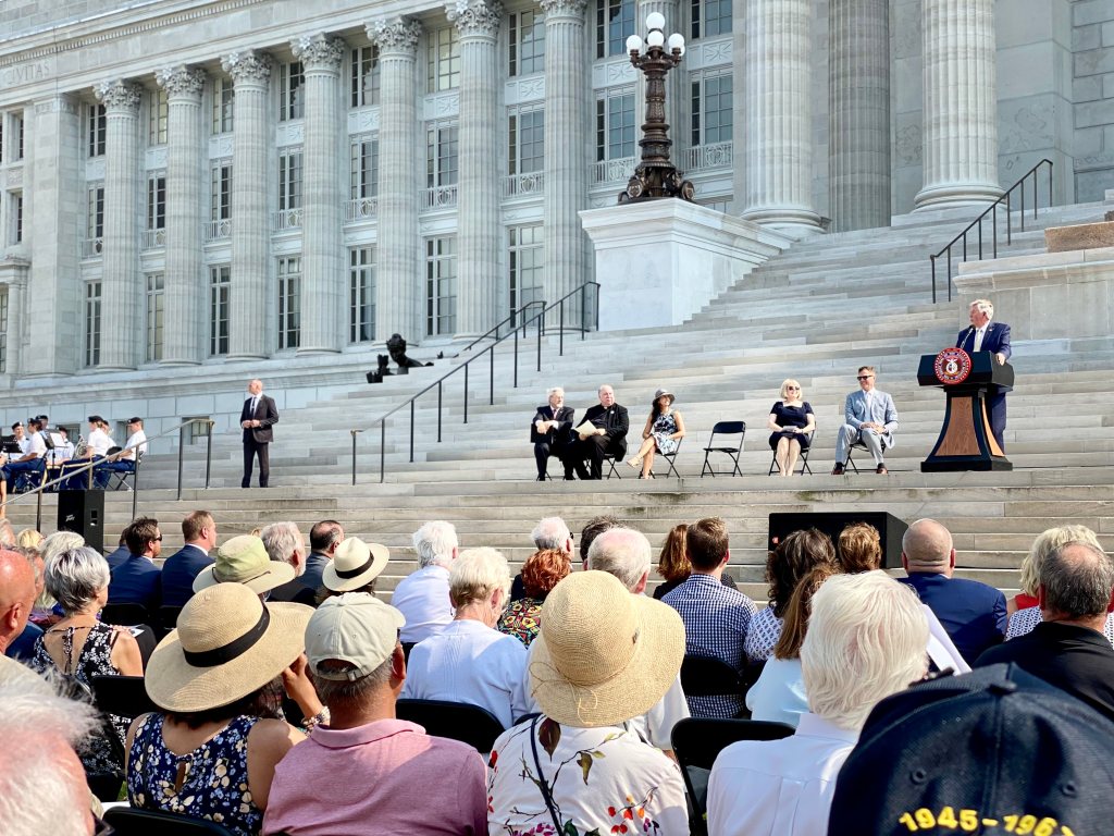 The morning dawned hot and muggy but a cool breeze was blowing in from the river for the Bicentennial festivities. Sorry I’m a big dork and think events like this are cool. I stood in the sun until I felt my right shoulder warming up and fearing an even blotchier tan/sunburn situation, I moved to the shade off to the side.
