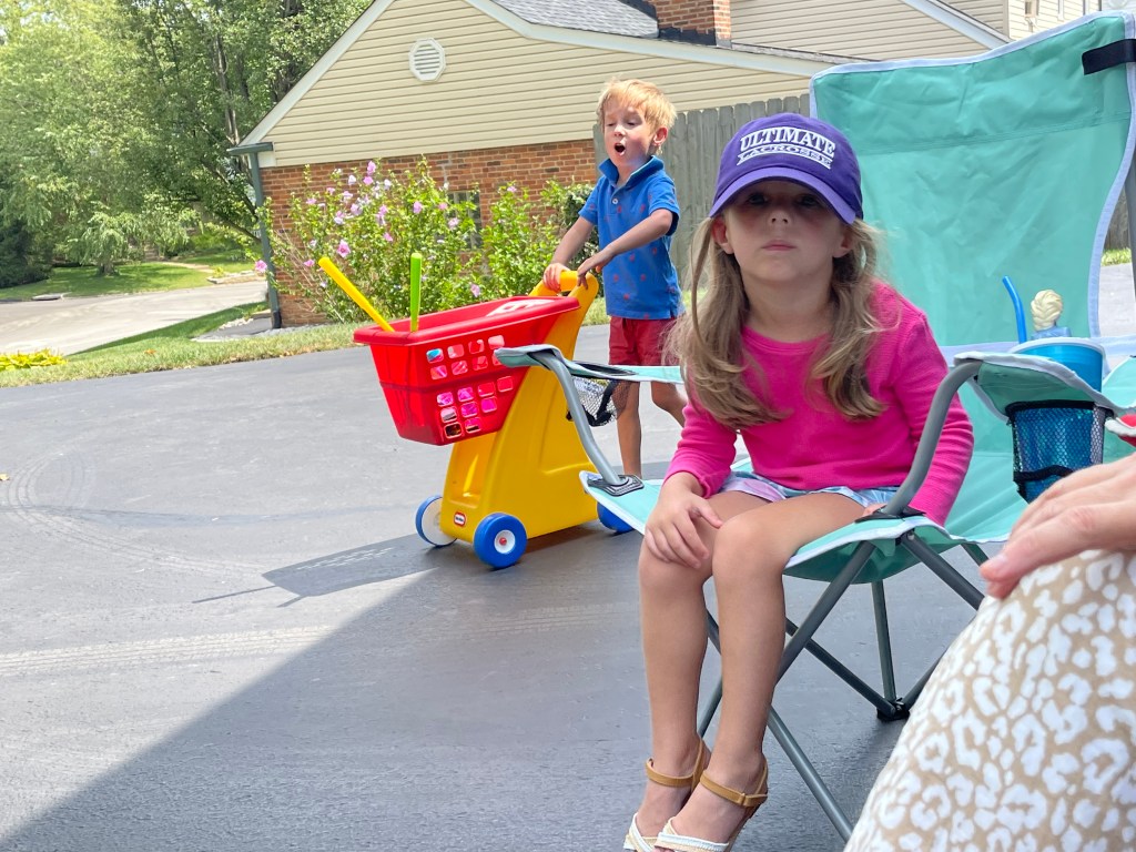 On Friday, the boy brought the twins over for a visit. Lottie complained about being hot…