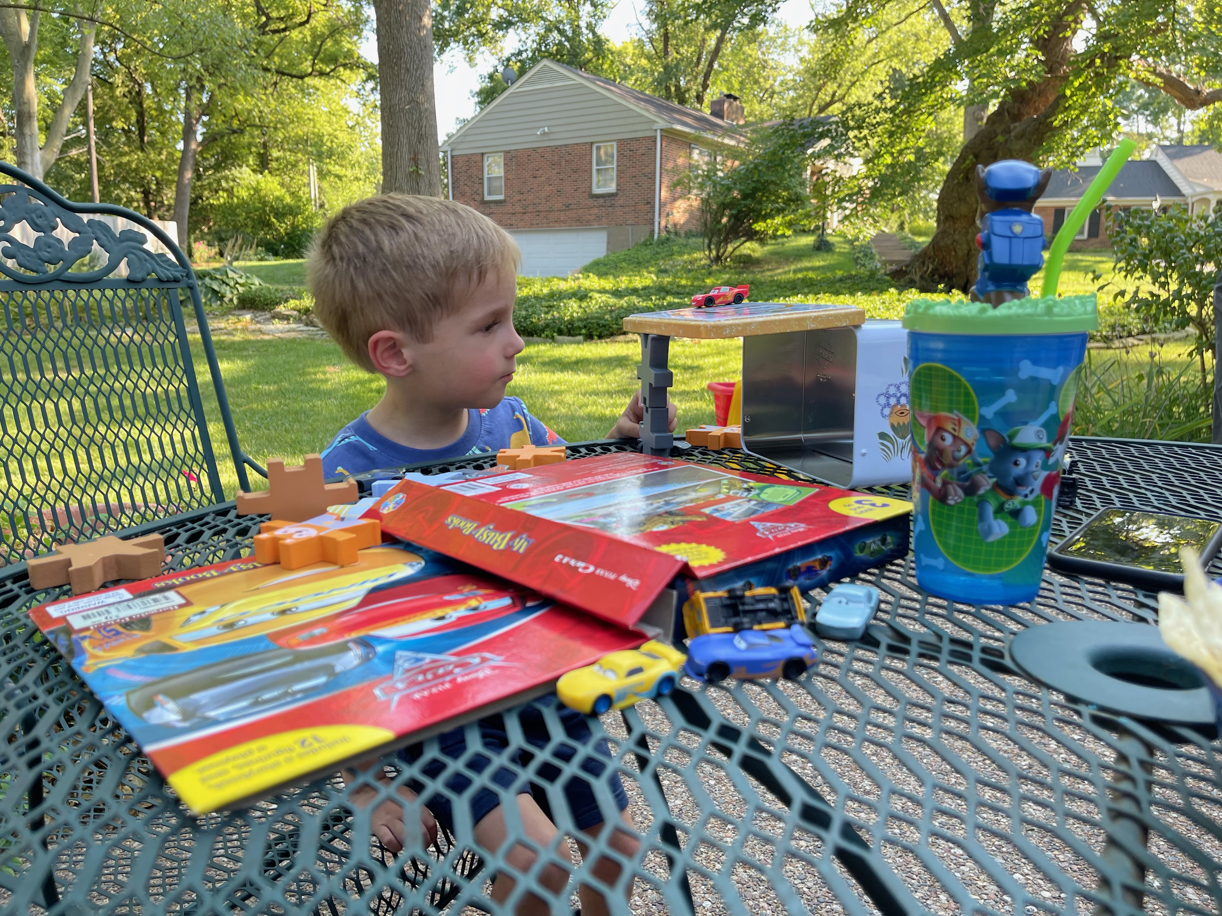 Daughter #1 drove home that late afternoon after a busy week in JC for some downtime in our flyover town. On Saturday we were very successful at an estate sale and I bought a classic Forshaw wrought iron table and chairs for our patio. I have been on the lookout for a nice set for a couple of years, so I was very pleased. And what a bargain! The boy picked them up on Sunday morning before he opened his store and we went to church. How nice to have a son with a truck who so cheerfully pitches in!