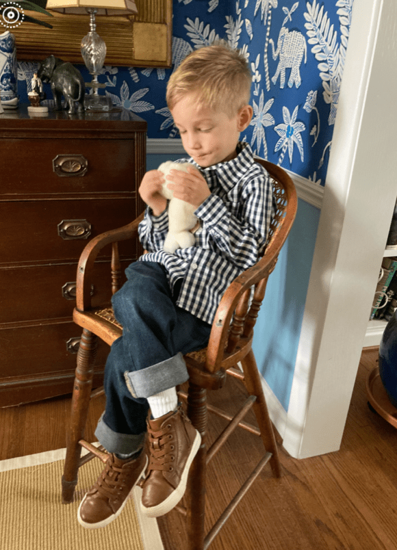 This next drawing reminds me of my son Tim and his cat. She isn’t that big but she has the heart of a lion. Who is that bad man peering through the curtain? You just know there’s an enchantment involved.