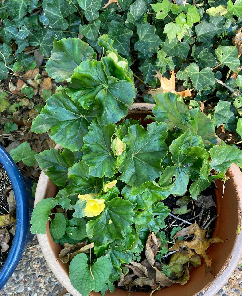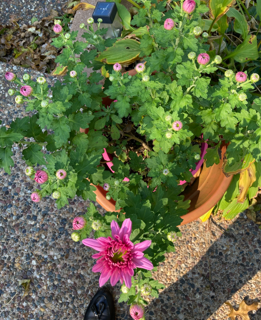 It is the tail end of blooming season here in flyover-land. We are in our second go-round with this chrysanthemum plant and the same goes for this begonia.