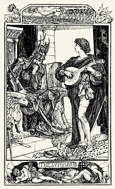 I like this picture of the lute player trying to cheer up a brooding king. It’s easy to imagine the sad king’s story.