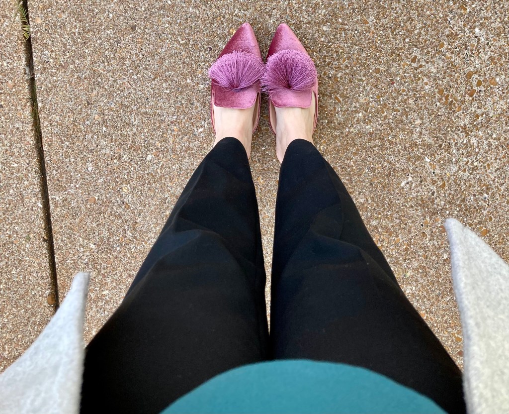 I wore these shoes on Monday because how can one be unhappy with giant tassels/pom poms on one’s shoes? Well, I didn’t wear them today and my mood tonight reflects the brown loafer mules I wore instead. That is to say,