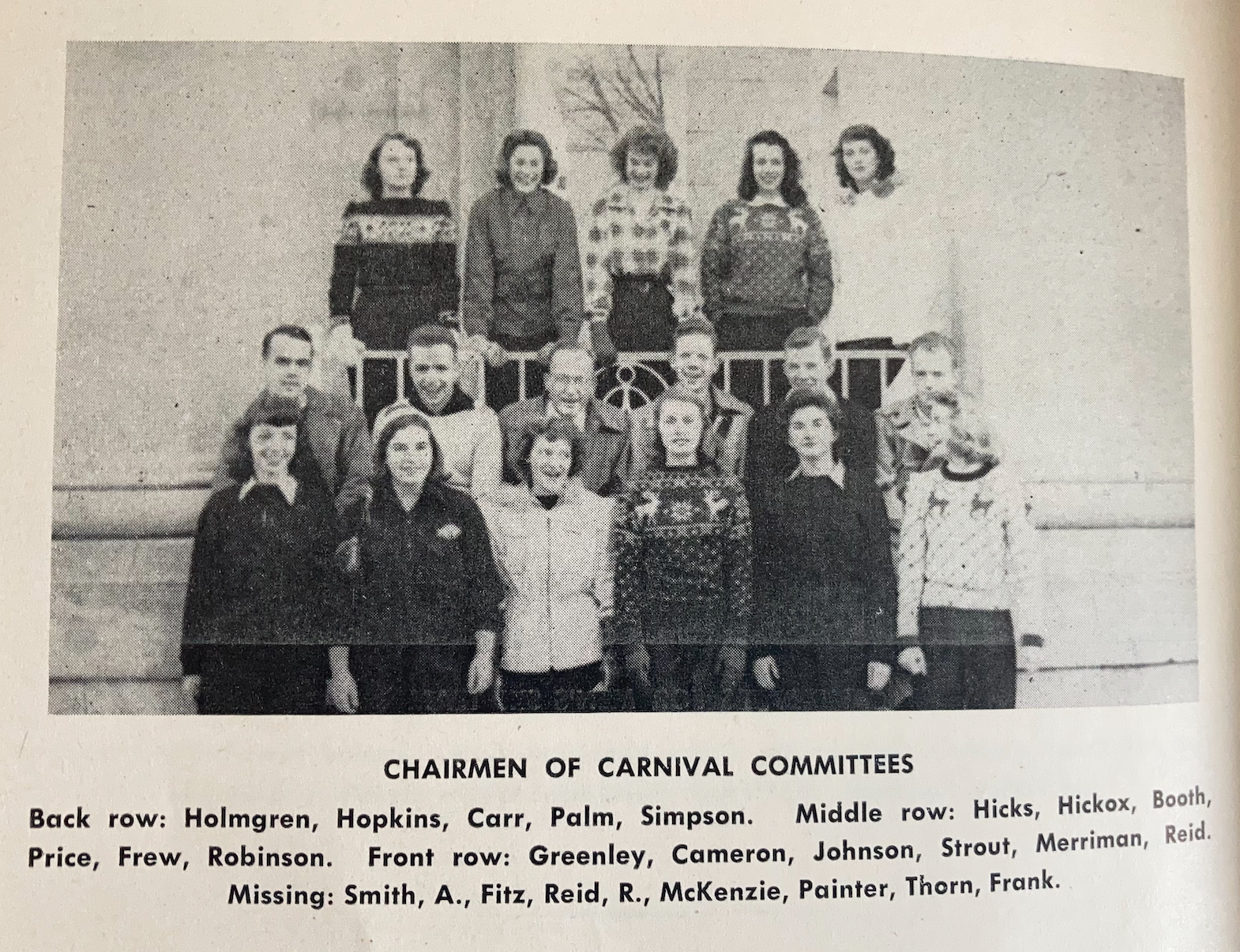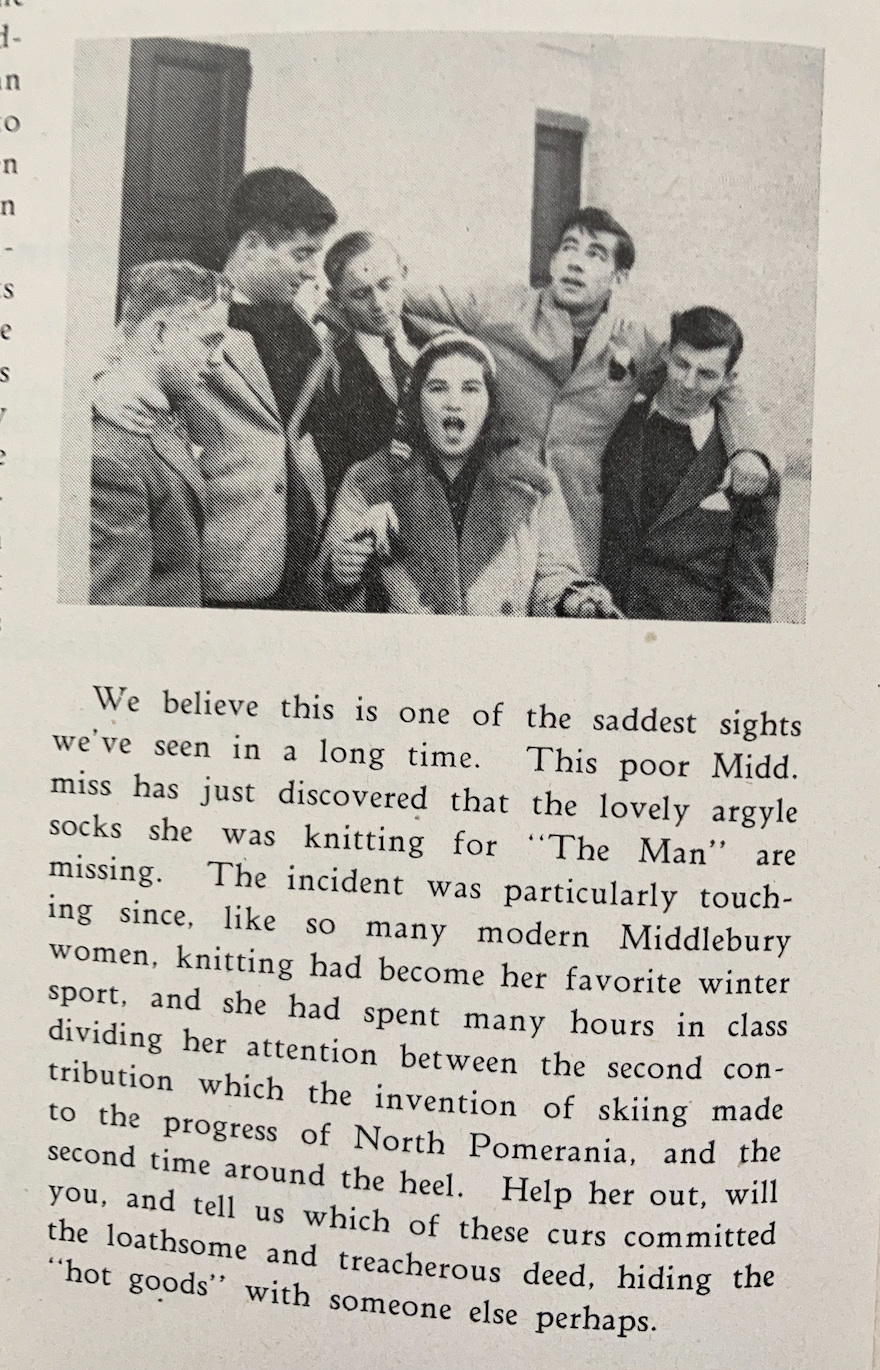 As winter approaches and we bring out all the cold weather gear, I thought I’d insert a few pics from the Middlebury College 1946 Winter Carnival booklet I unearthed while cleaning out a drawer in the highboy.