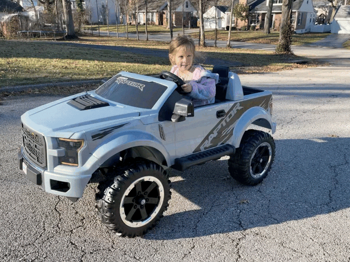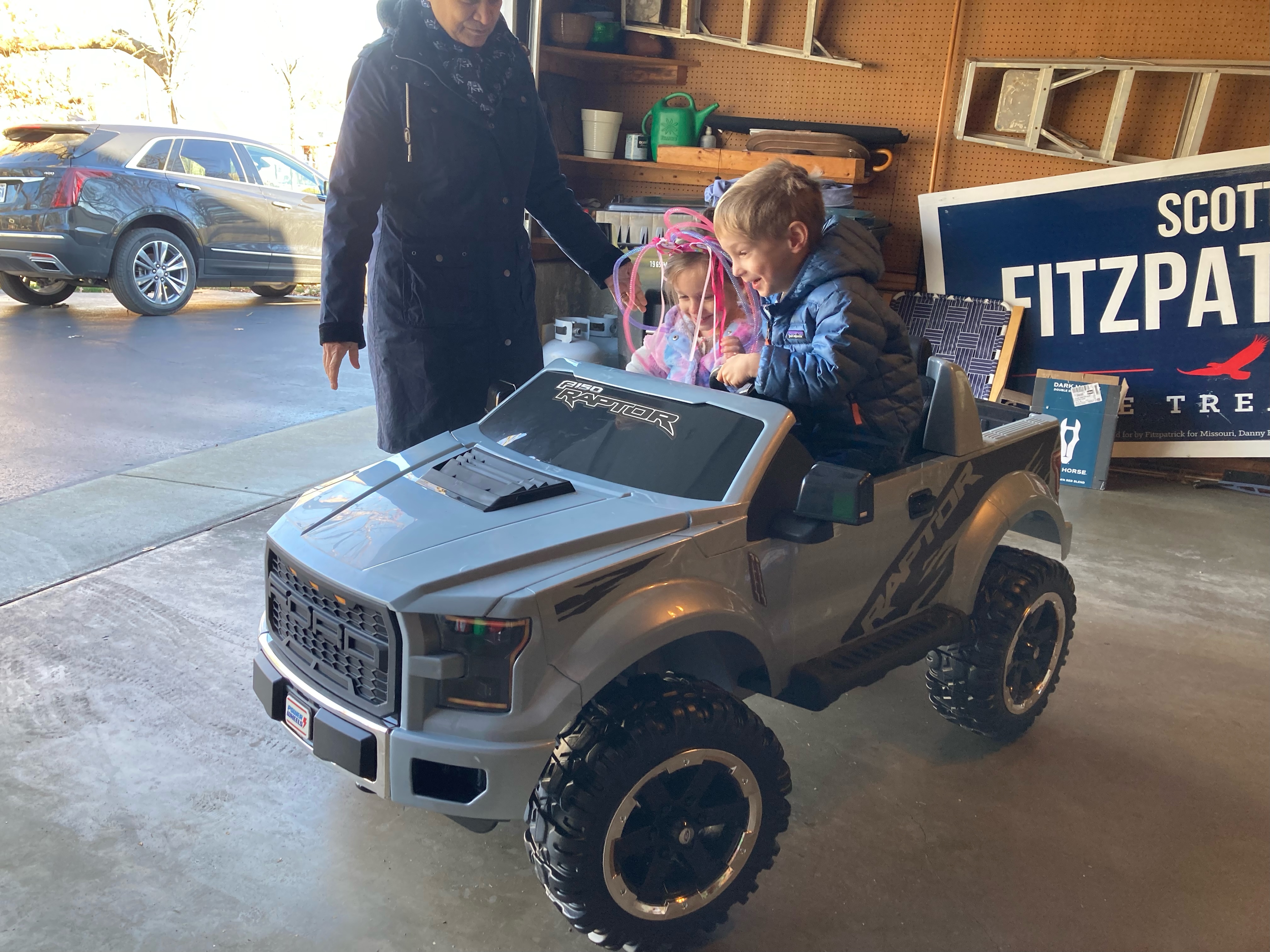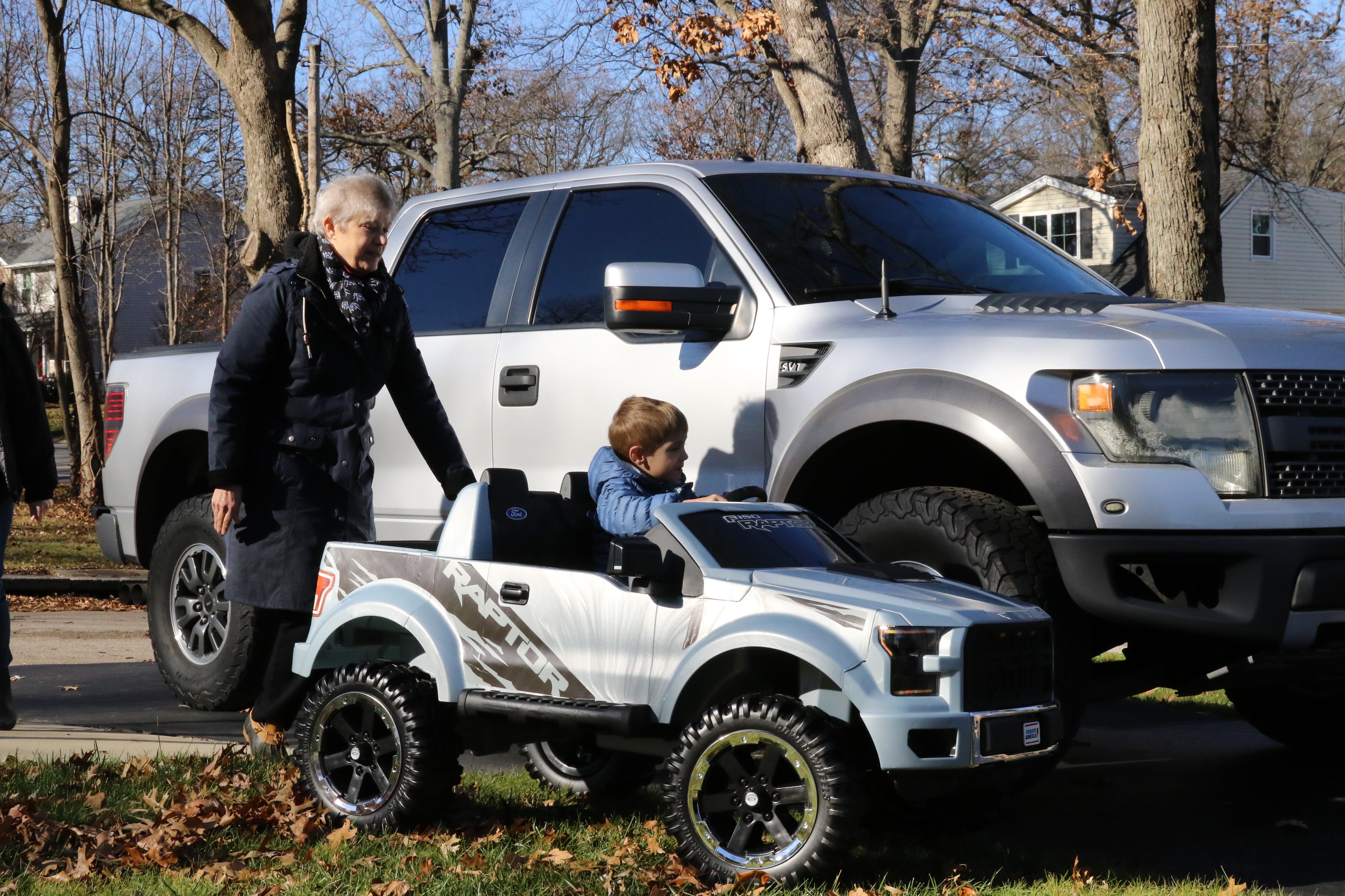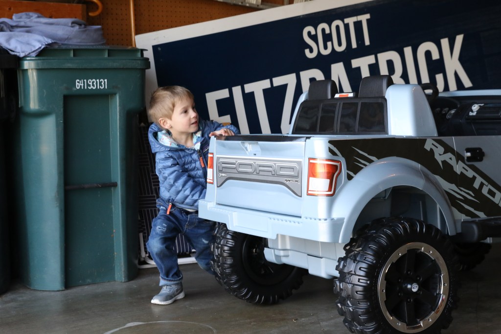 “It’s a Raptor!” cried the wee Bud. They both took it for a spin and then he just wanted to park it in the garage where he inspected every inch of it (under the hood, how the tailgate worked, etc.).