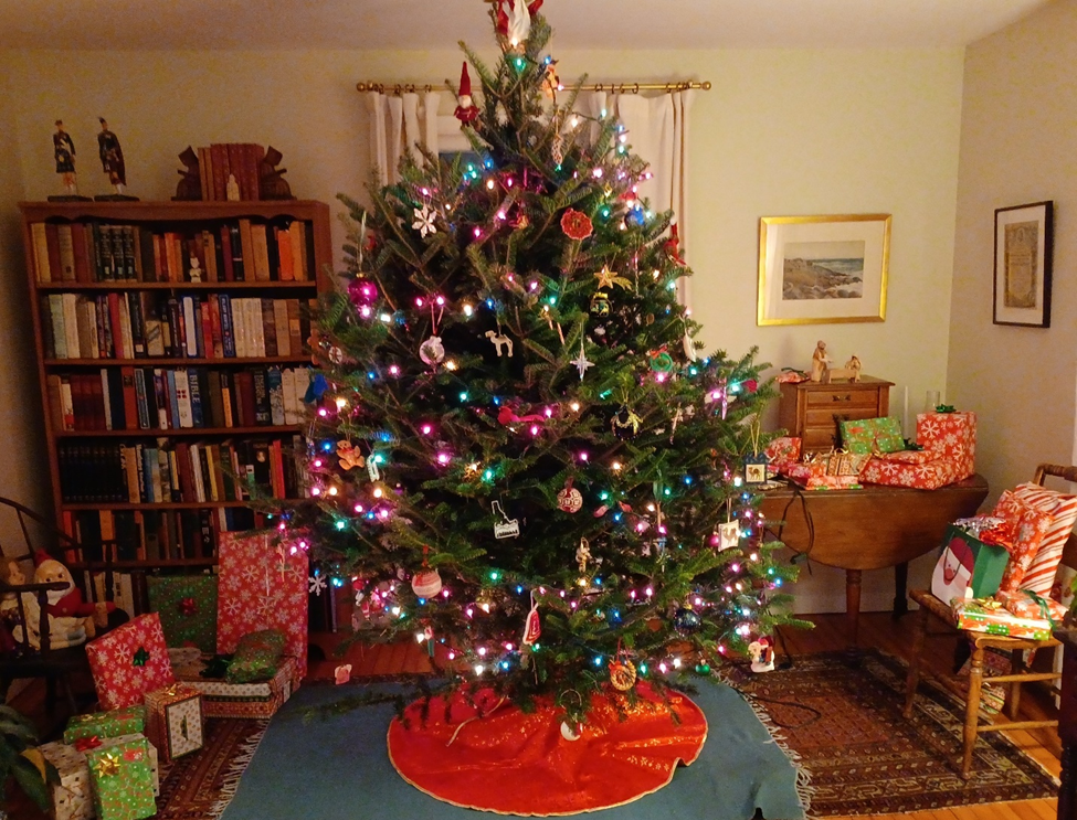 With the help of our eldest son, we got our Christmas tree up and decorated last weekend. Every year I photograph the tree, though there is little to distinguish one year’s tree from another. Since I got my smartphone, the clarity has certainly improved, but in the photo below I managed to cut off the topper angel’s head. Obviously, I need to work on composition. (I also see the need to rearrange some of the lights. Note the big empty hole around the Idaho ornament at the lower center of the tree). We’ll consider this year’s tree a work in progress.