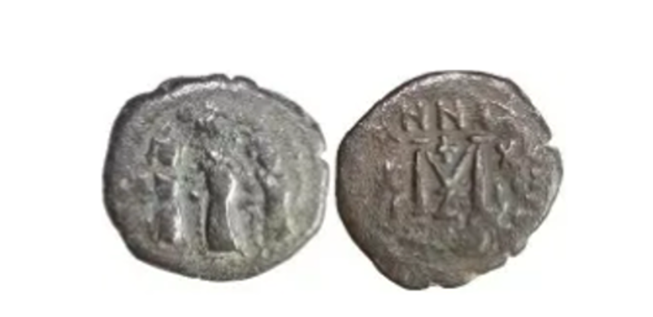 The other side depicts the Empress Martina, the Emperor Heraclius (610-641) and their son Heraclius Constantine standing together, as in this example the DH found online.