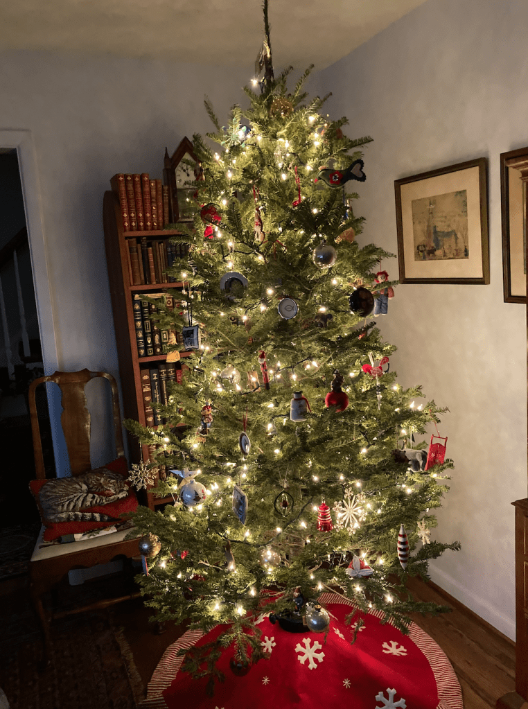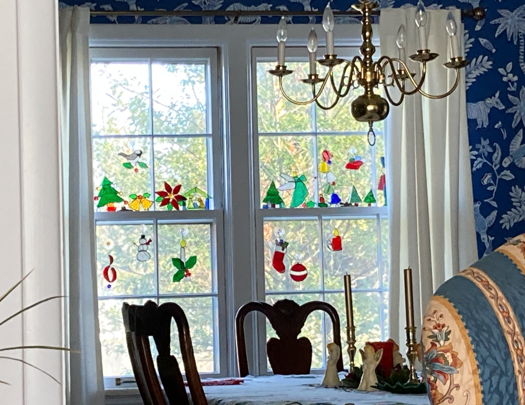 The last weekend before Christmas has passed and I am ready for the big day. I got the tree up and decorated with the help of the boy who came over twice–once after work to put the tree up and once before work to do the lights. I then put up the decorations by myself. Voila–not the best shaped tree ever, but who cares? It’s pretty. I also put up my stained glass collection.