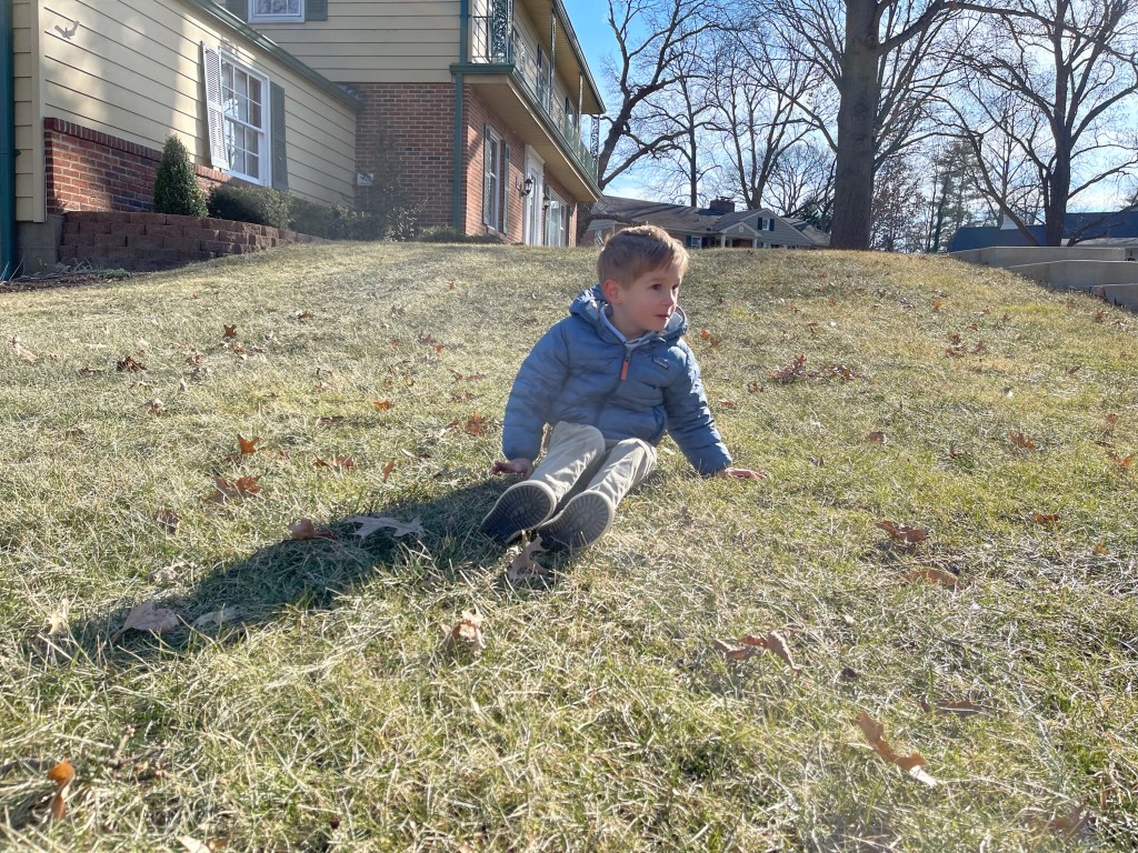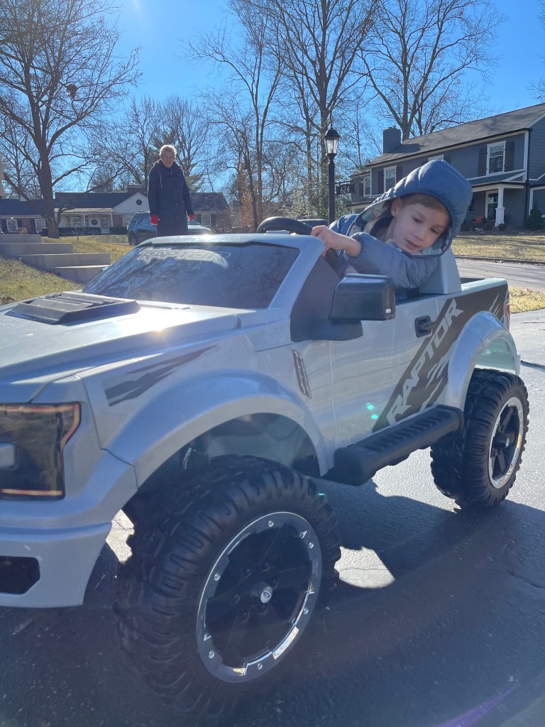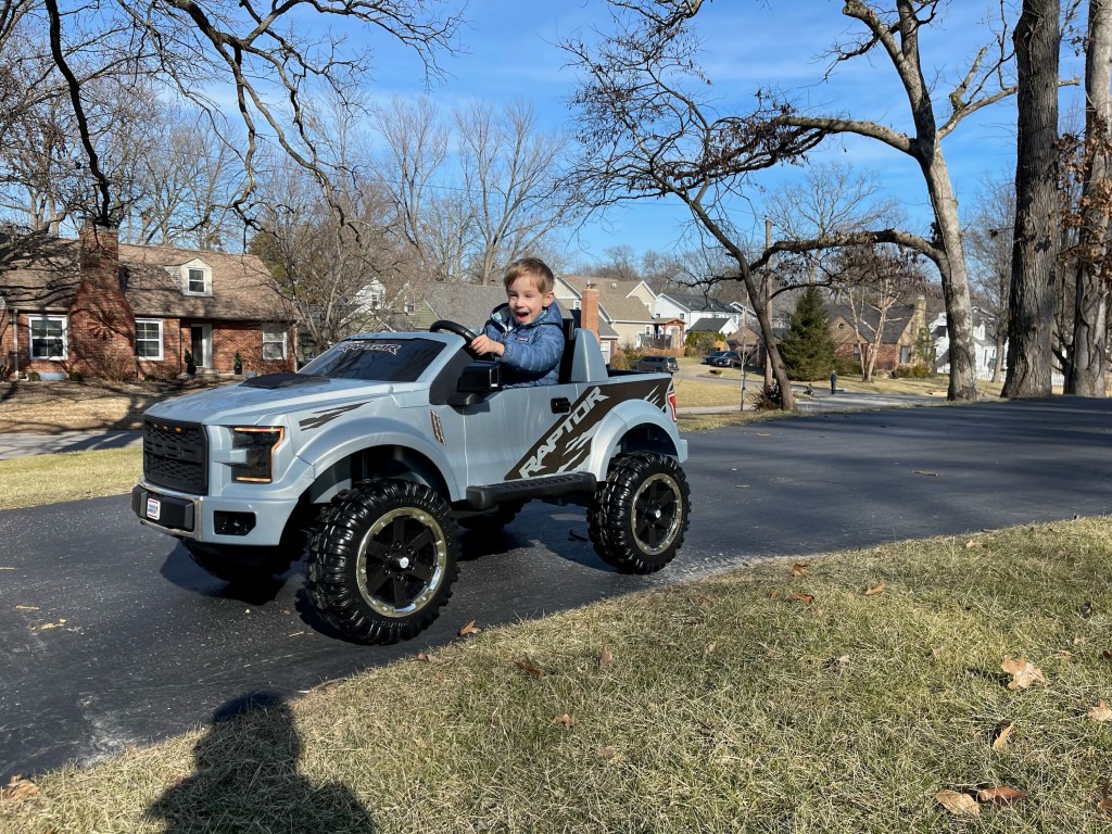 We then headed to our house to eat the shepherd’s pie the OM had made ahead of time. The temperature had reached 40 degrees so the wee twins got to run around outside and drive the Raptor around the cul de sac.