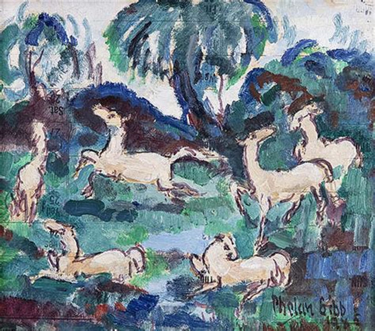 Out of curiosity, I looked up Harry Phelan Gibb (1870-1948) and discovered a perfectly competent English artist, who started out painting pleasing landscapes,