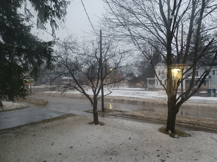 Yesterday the temperature reached 48, the rain fell in torrents and the snow turned to ugly brown slush. There were flood warnings.