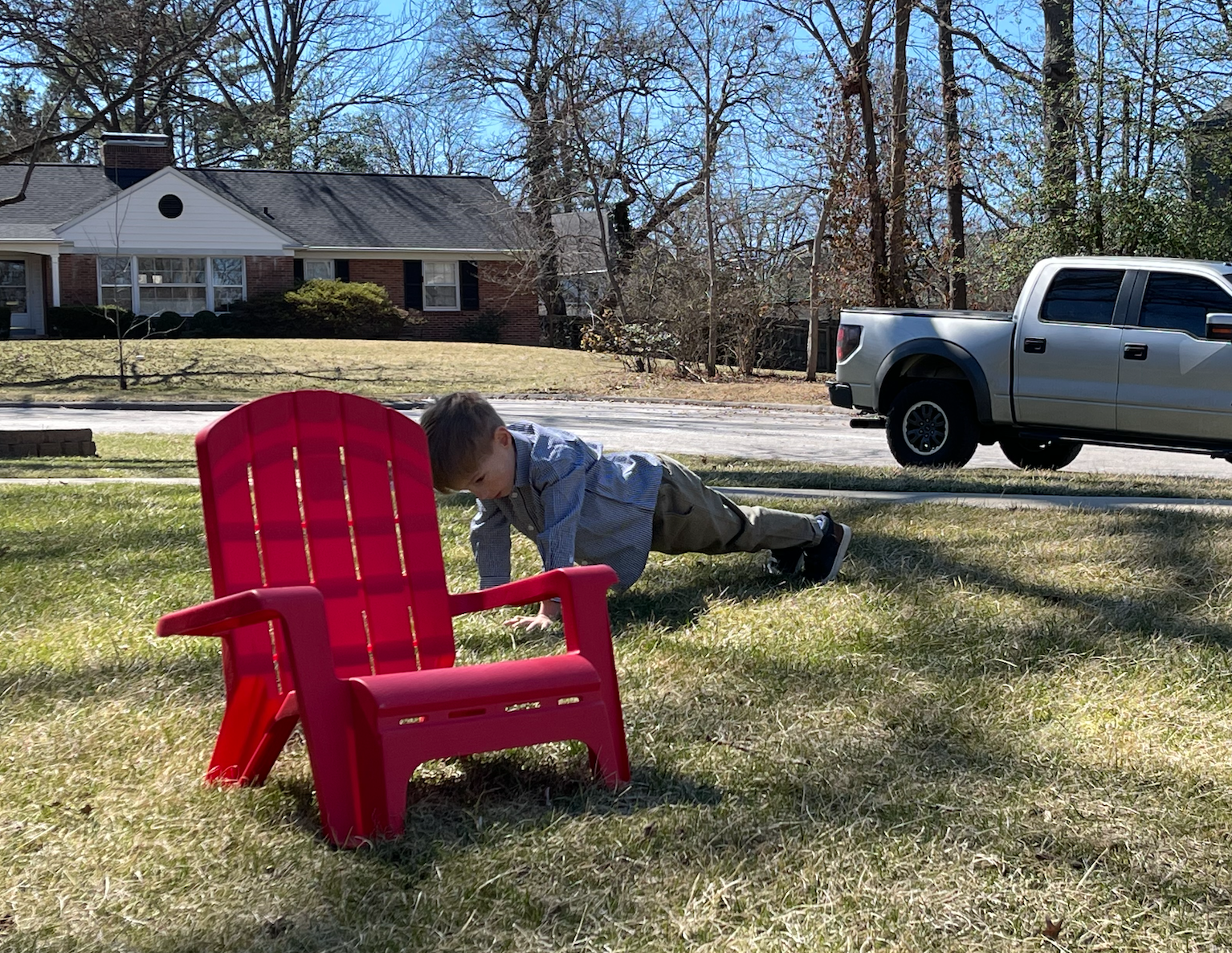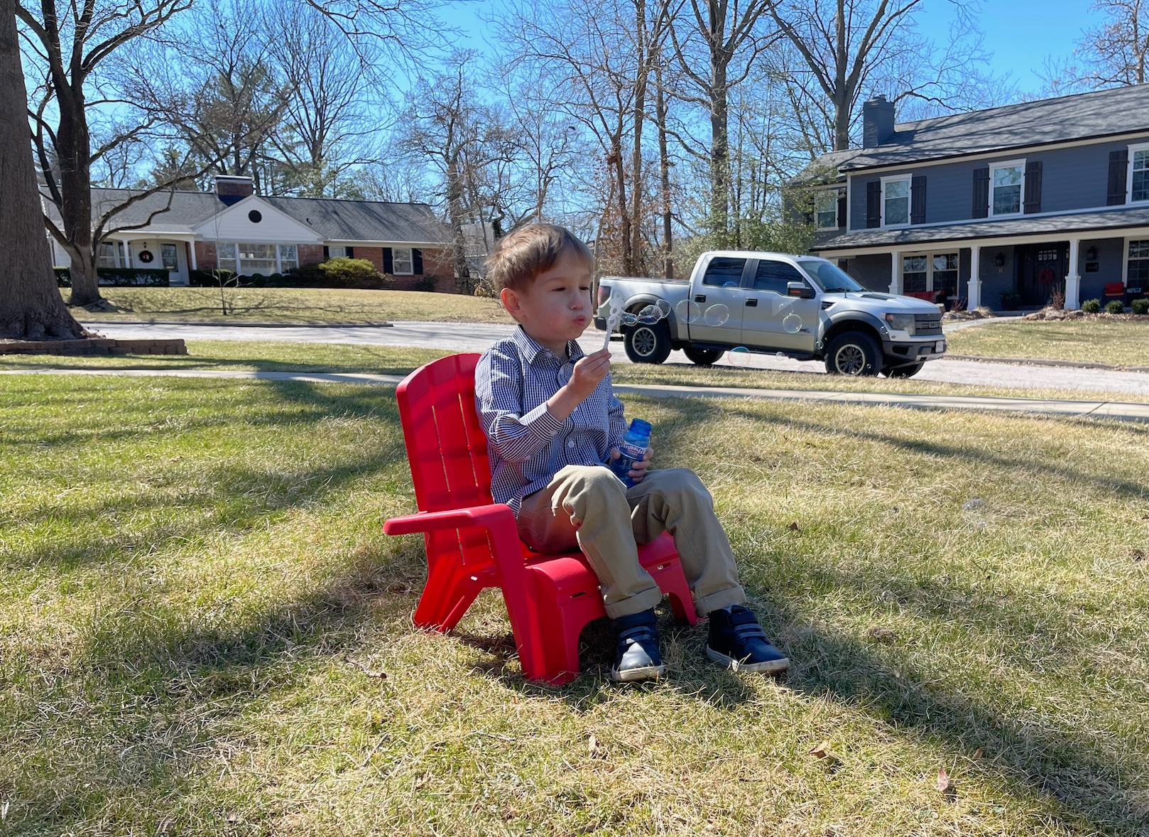 …in a nice sunny spot he chose for his chair. He (and I) are ready for some driveway sitting!