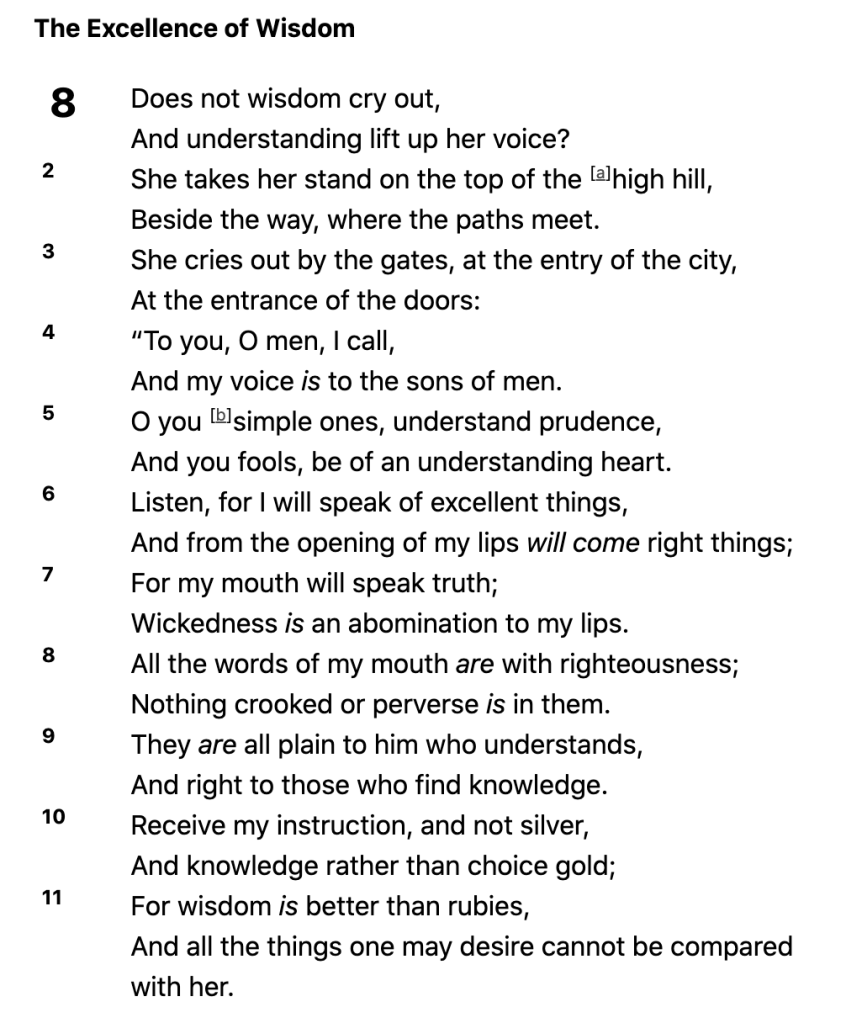 As you know, I am slowly reading through the Bible (four books/one chapter at a time). At the moment I am reading the book of Proverbs and I highly recommend it.